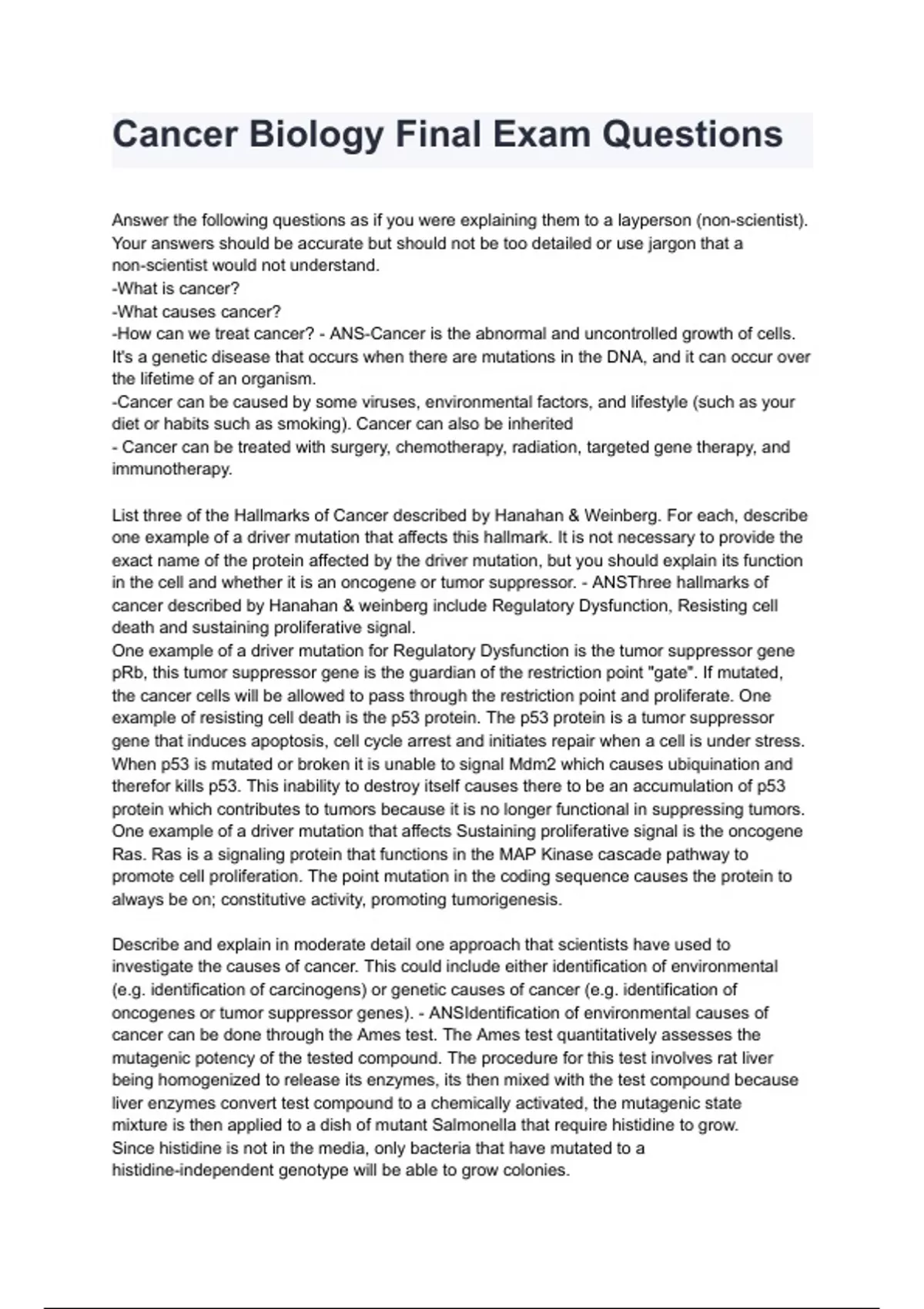 Cancer Biology Final Exam Questions 22024/2025 (100% verified