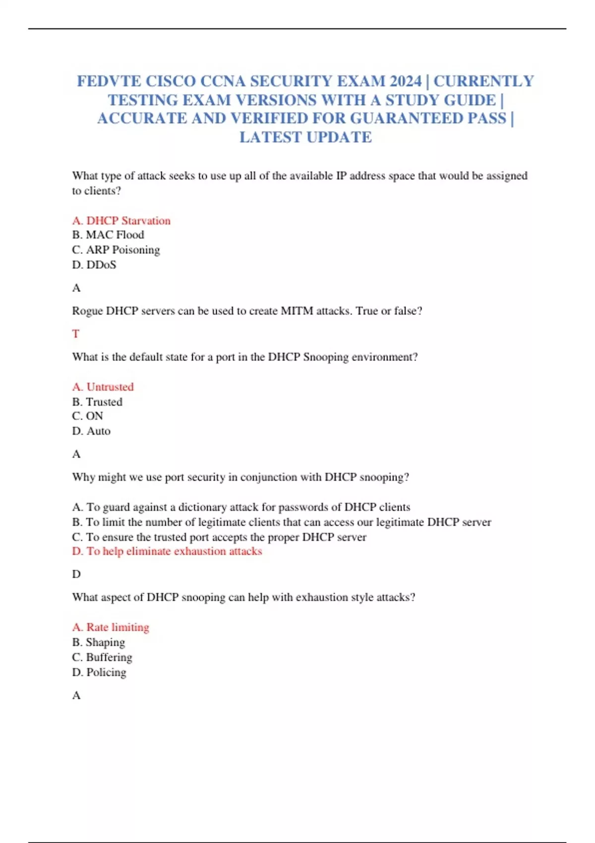 FEDVTE CISCO CCNA SECURITY EXAM 2024 | CURRENTLY TESTING EXAM VERSIONS WITH A STUDY GUIDE | ACCURATE AND VERIFIED FOR GUARANTEED PASS | LATEST UPDATE