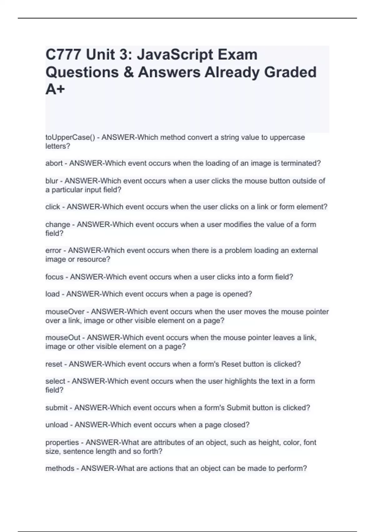 C777 Unit 3: JavaScript Exam Questions & Answers Already Graded A+