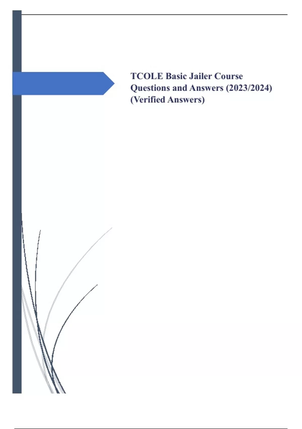TCOLE Basic Jailer Course Questions and Answers (2023/2024) (Verified Answers
