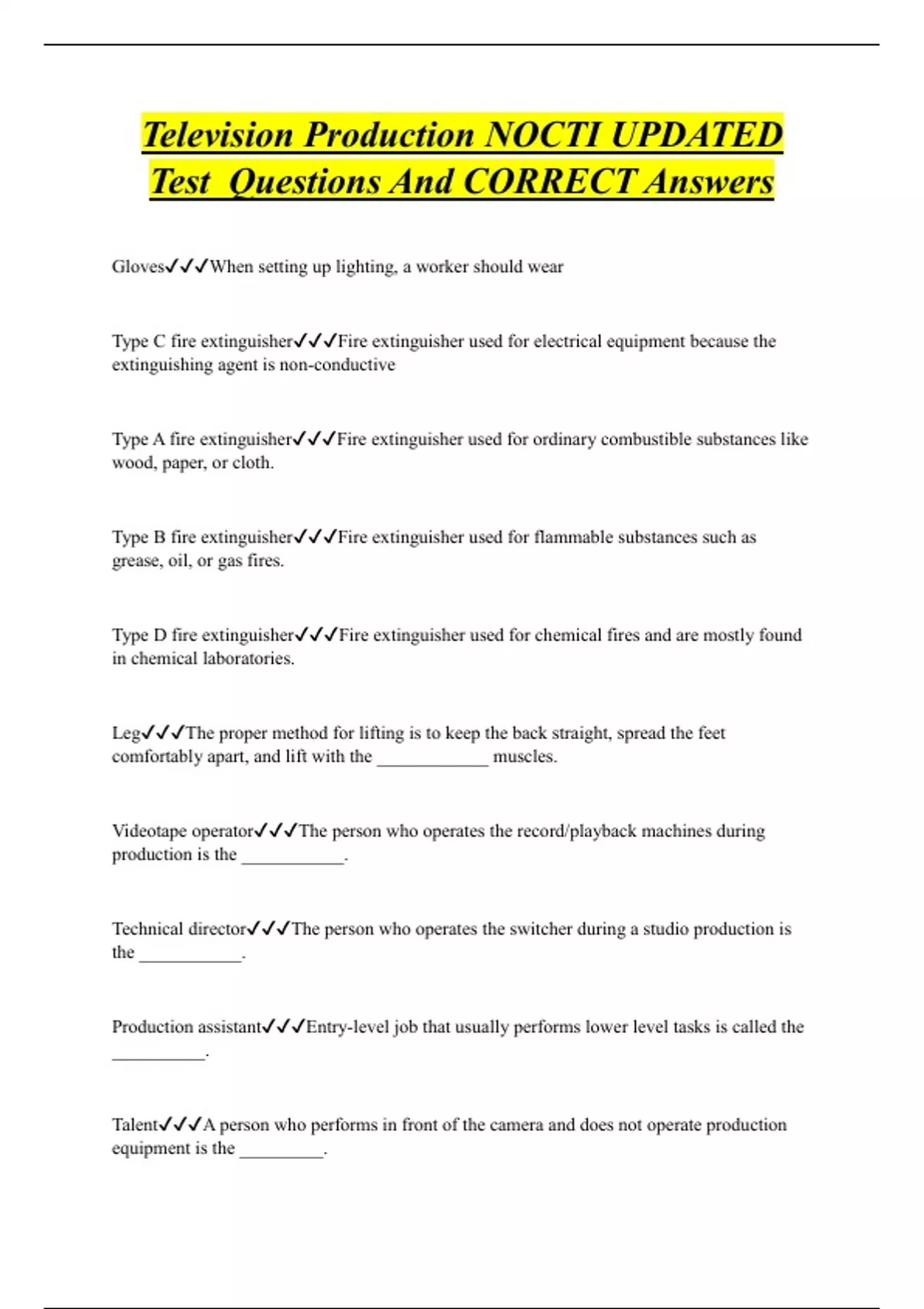 Television Production NOCTI UPDATED Test Questions And CORRECT Answers