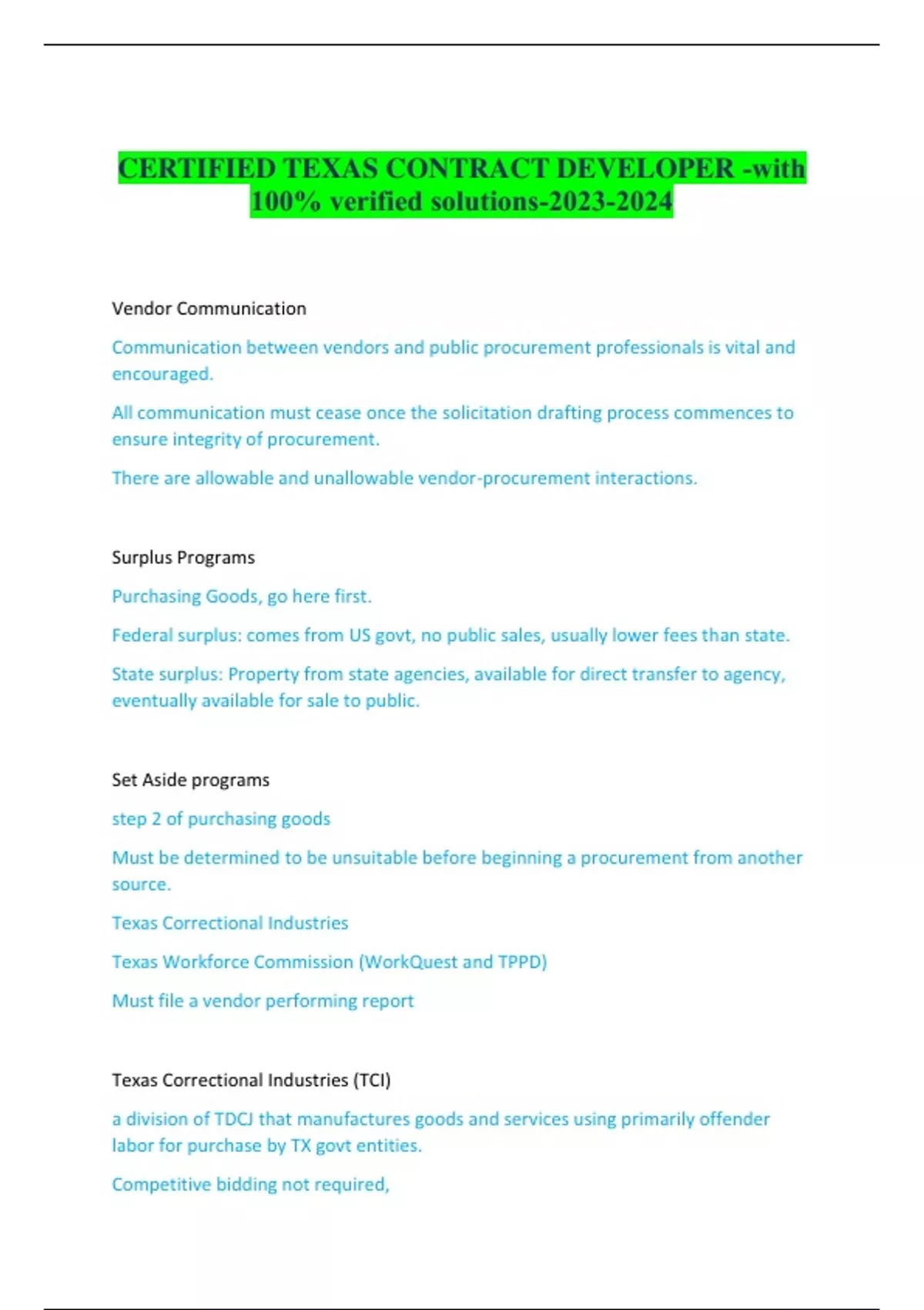 CERTIFIED TEXAS CONTRACT DEVELOPER -with 100% verified solutions-