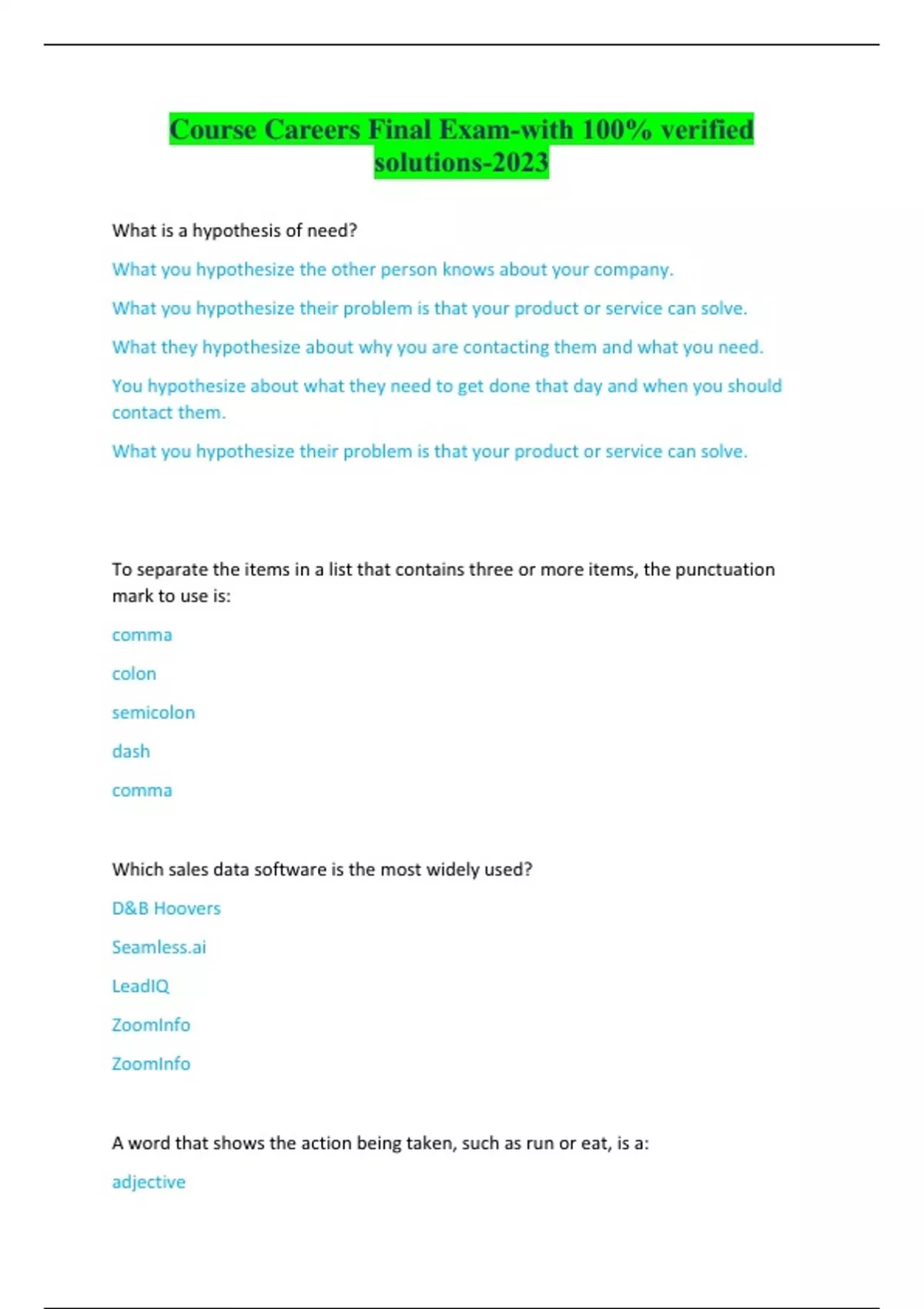 Course Careers Final Exam-with 100% verified solutions-2023