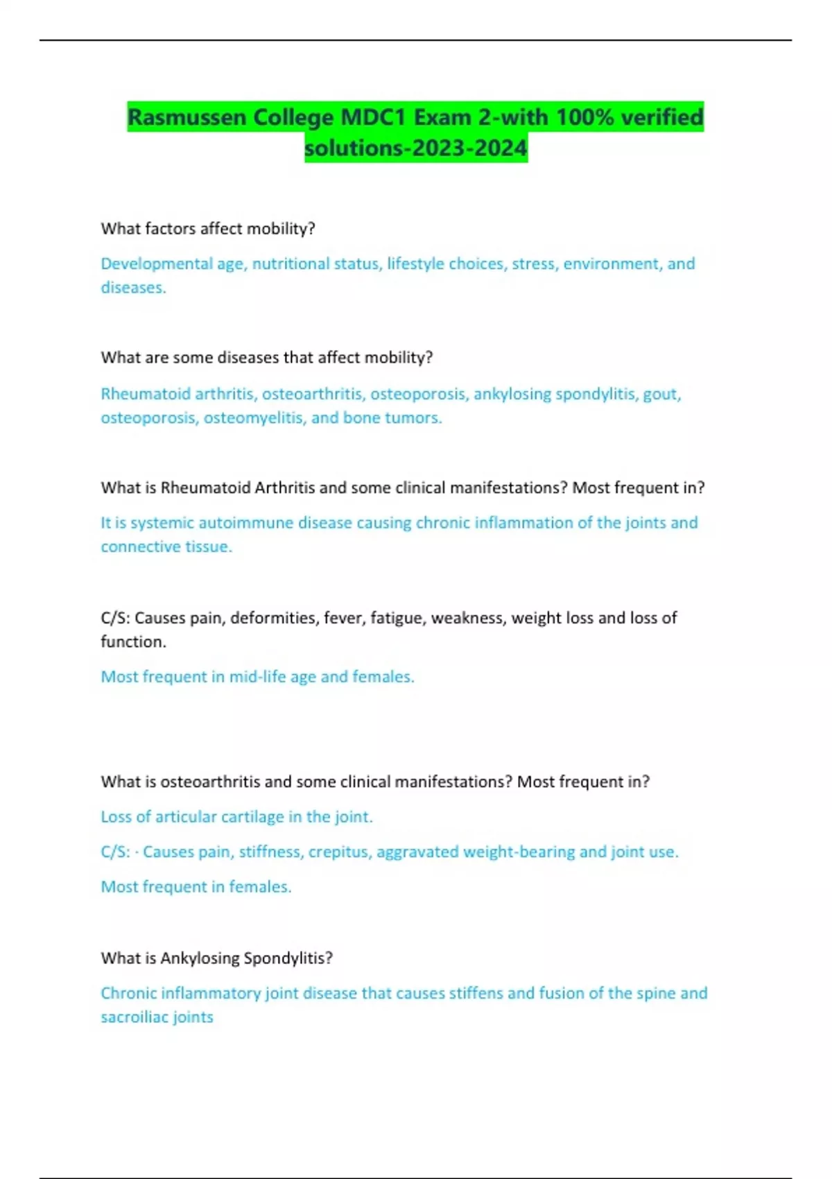 Rasmussen College MDC1 Exam 2-with 100% verified solutions-