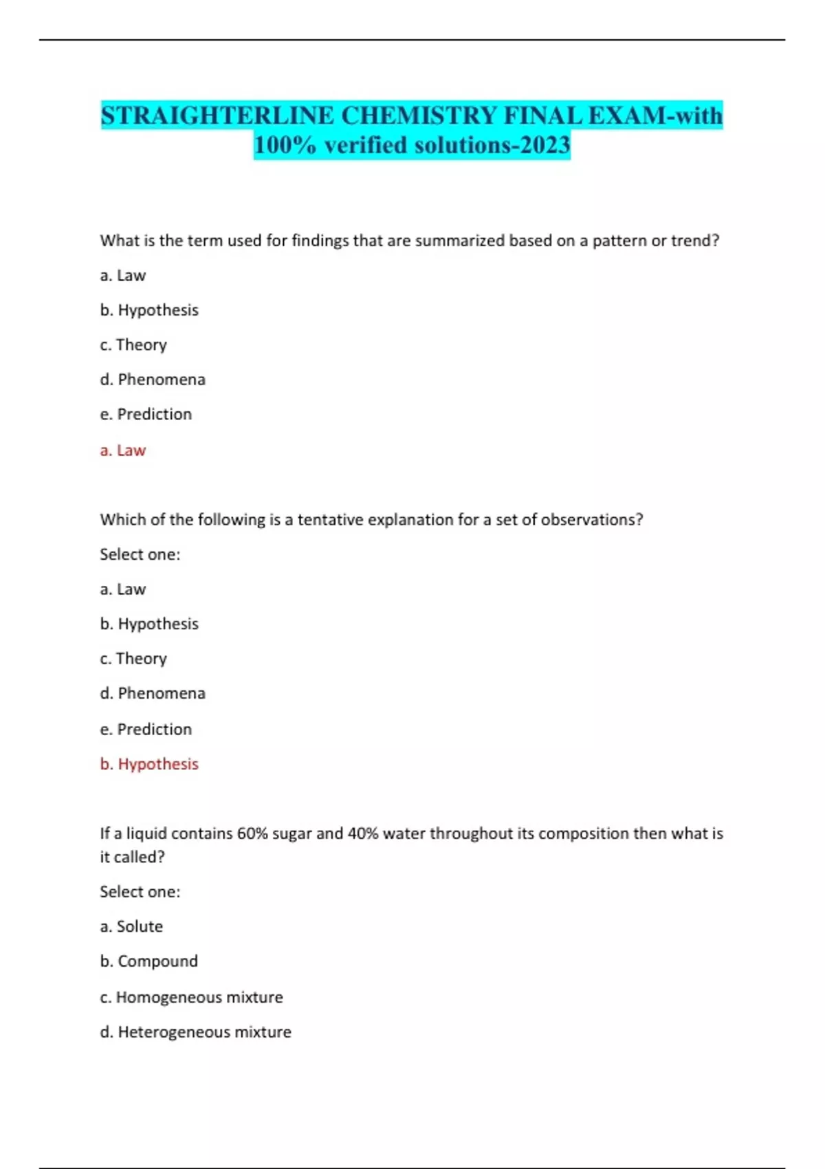 STRAIGHTERLINE CHEMISTRY FINAL EXAM-with 100% verified solutions-2023