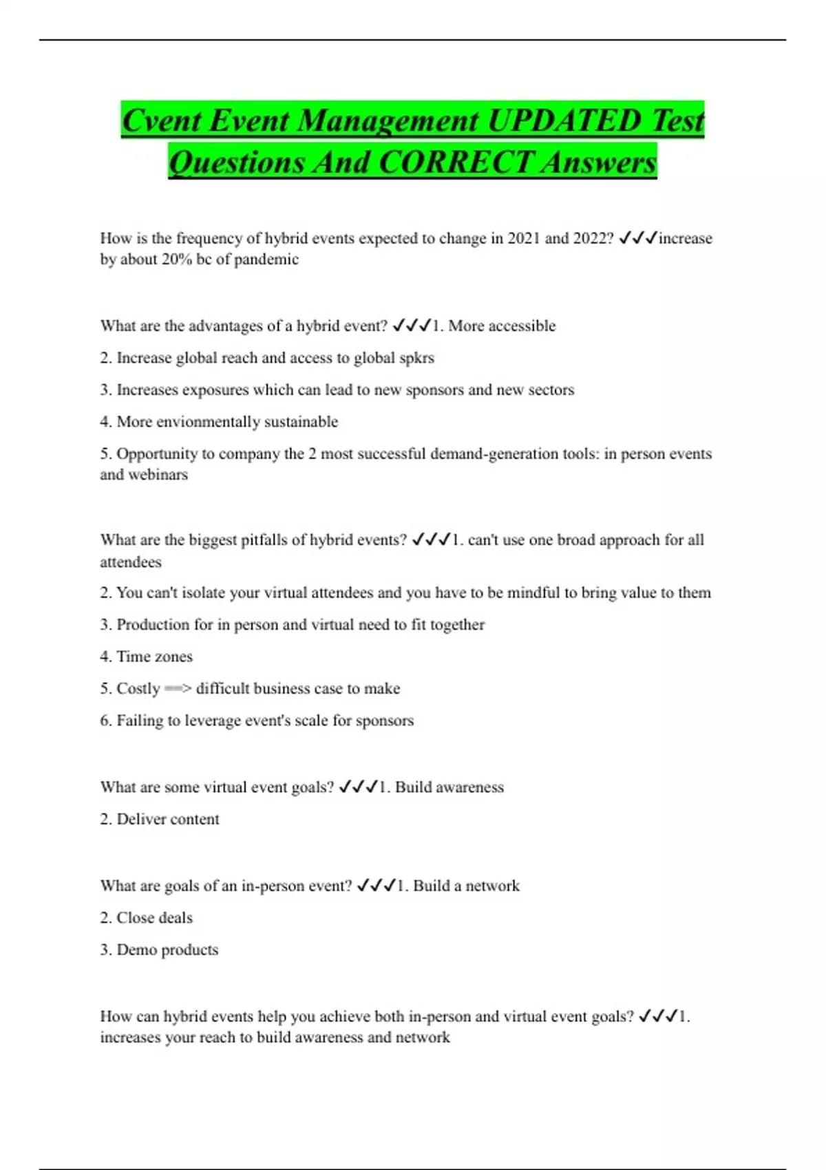 Cvent Event Management UPDATED Test Questions And CORRECT Answers