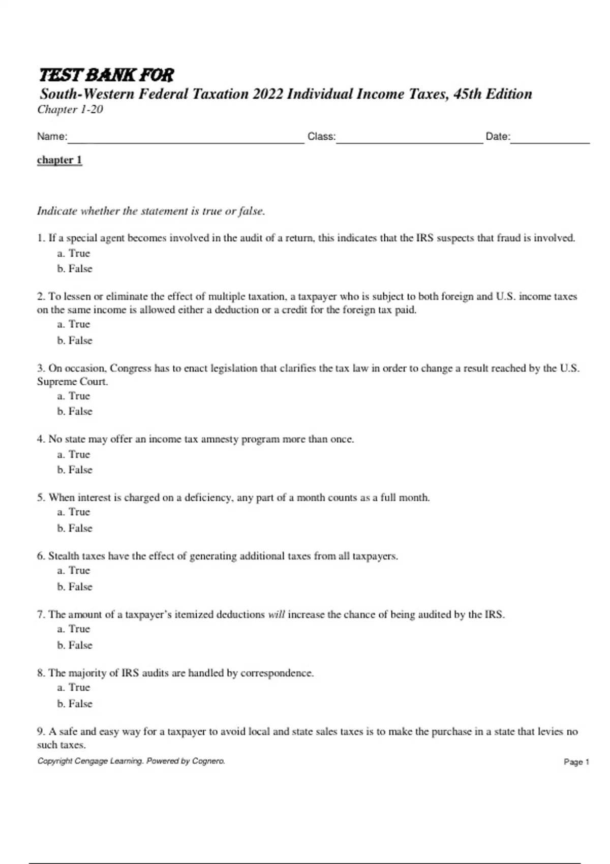 Test Bank For South-Western Federal Taxation 2022 Individual Income Taxes 45th Edition by James C. Young, Annette Nellen