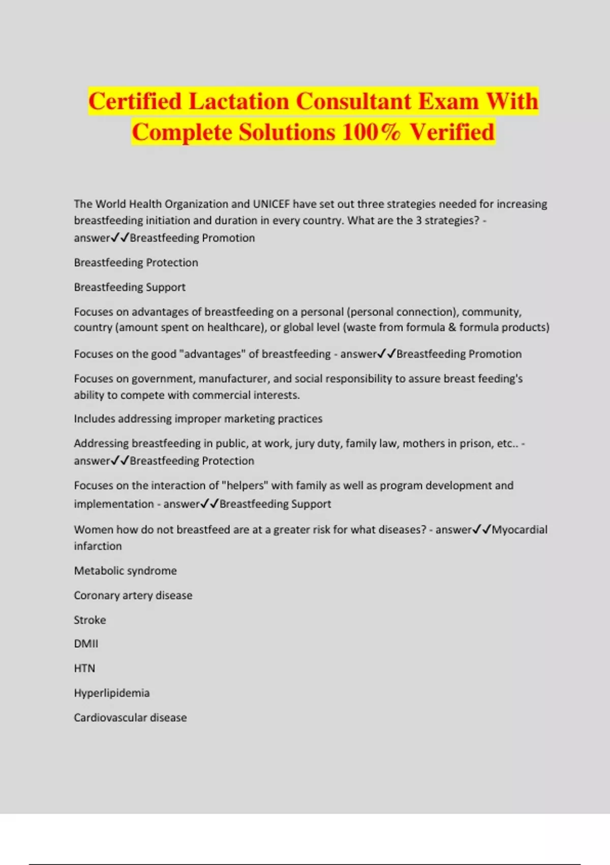 Certified Lactation Consultant Exam With Complete Solutions 100% Verified