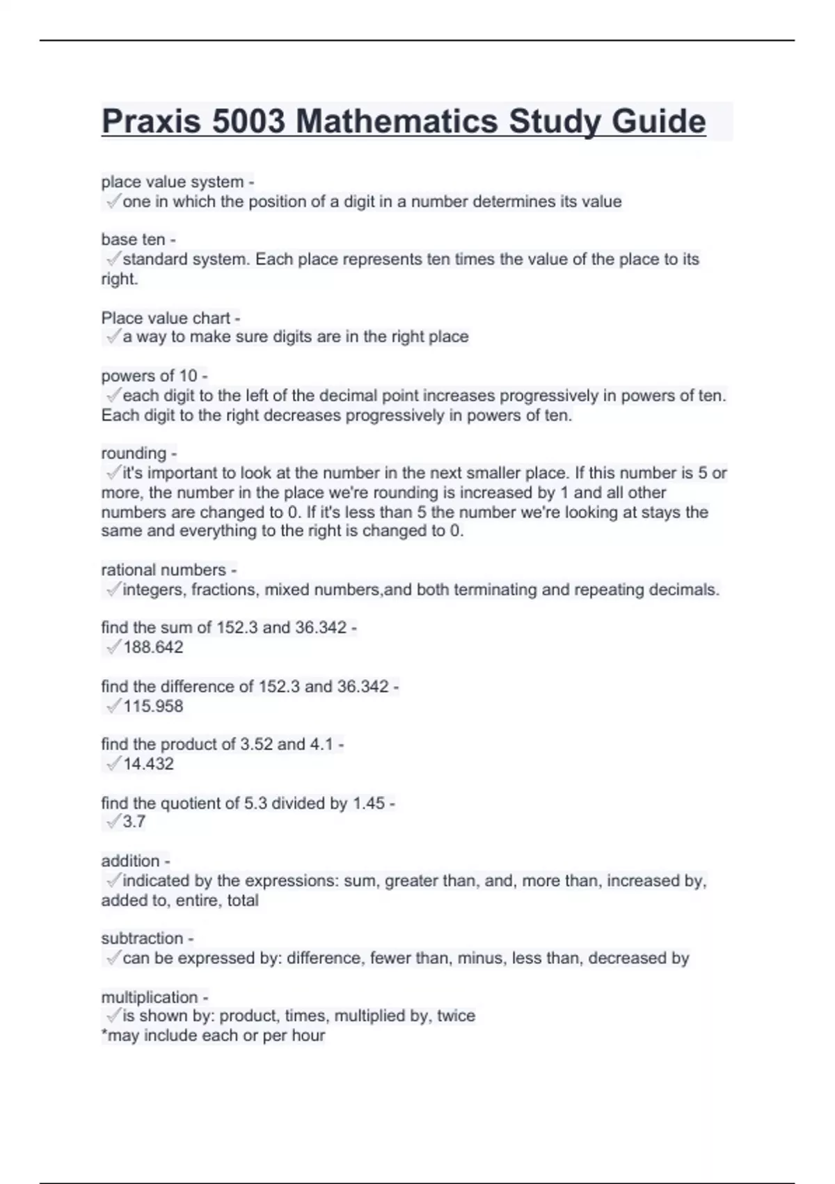 Praxis 5003 Mathematics Study Guide.