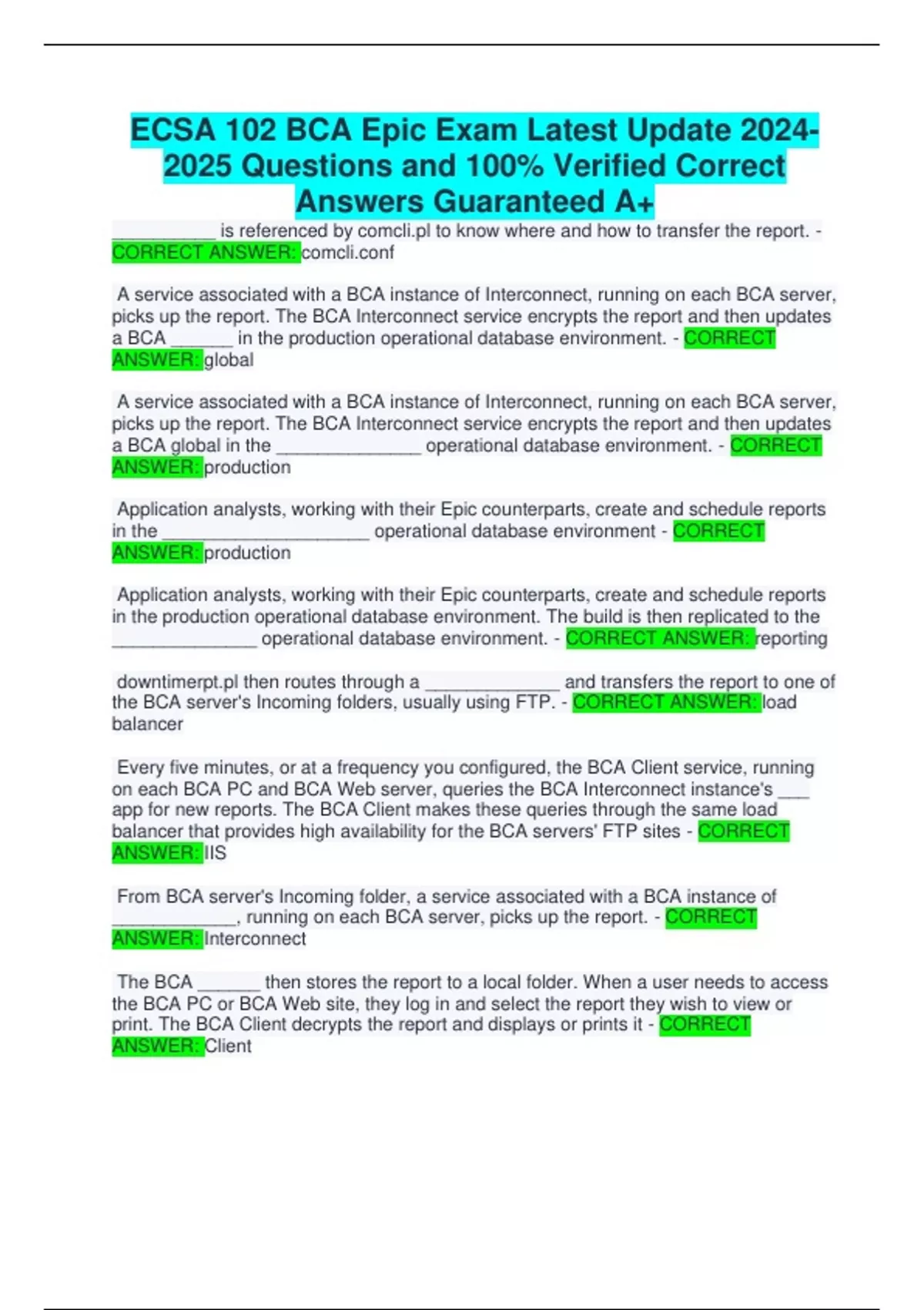 ECSA 102 BCA Epic Exam Latest Update Questions and 100% Verified Correct Answers Guaranteed A+