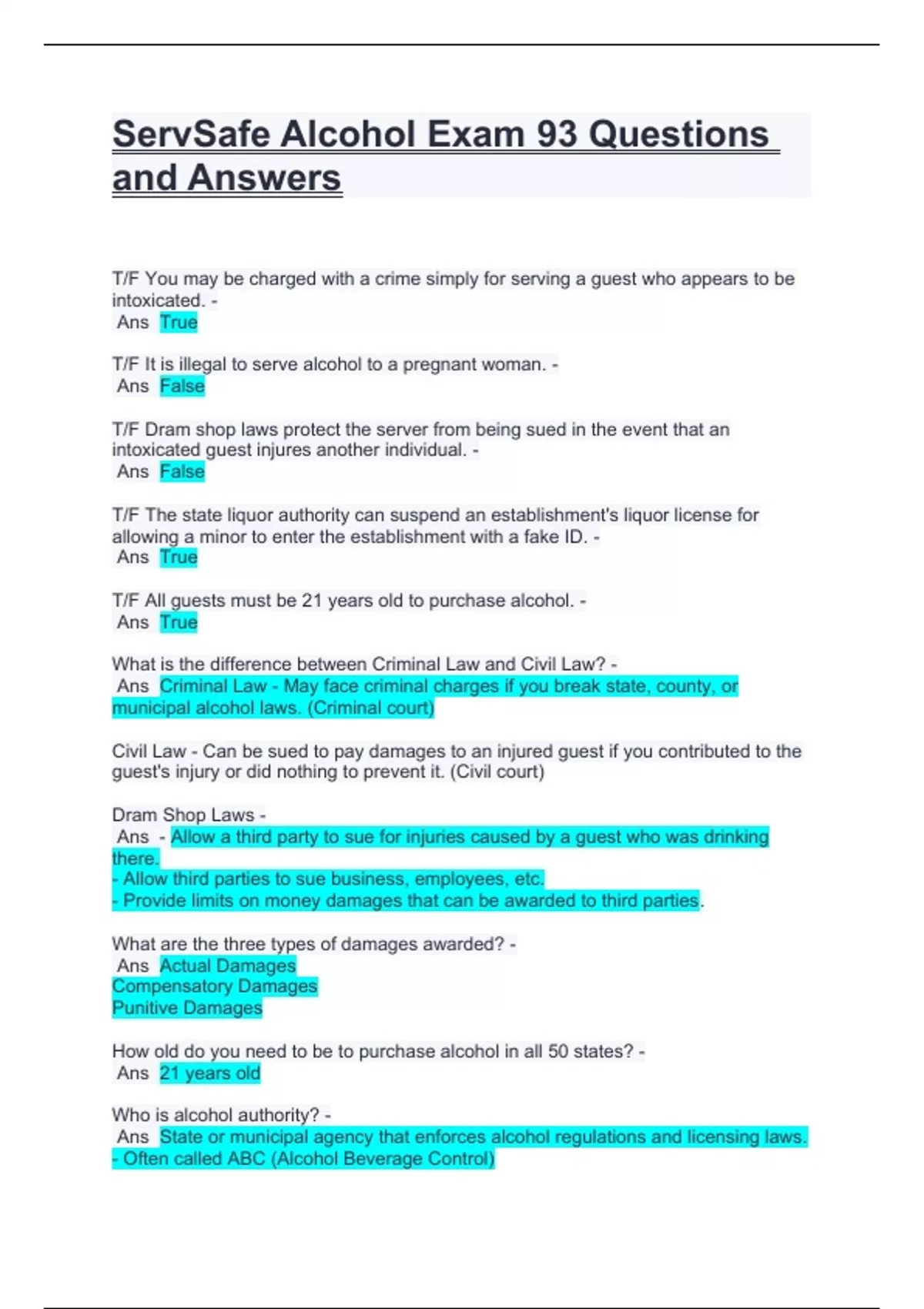 ServSafe Alcohol Exam 93 Questions and Answers.