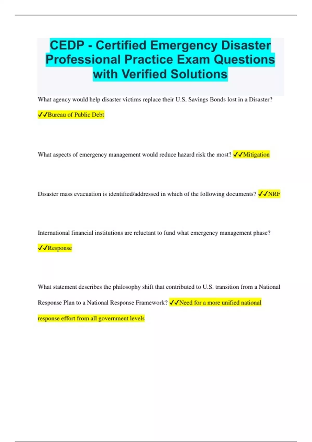 CEDP - Certified Emergency Disaster Professional Practice Exam Questions with Verified Solutions
