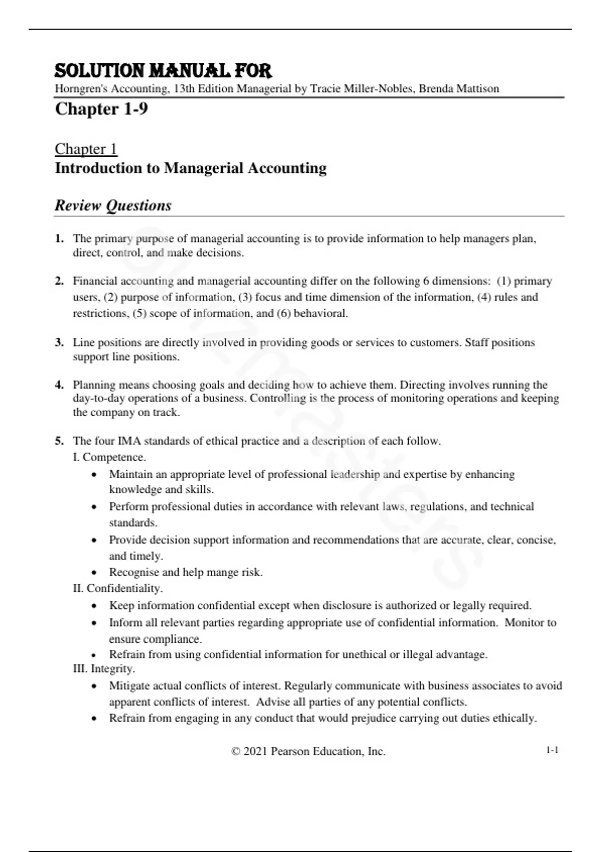 Solution Manual For Horngren's Accounting, 13th Edition Managerial Chapters by Tracie Miller-Nobles, Brenda Mattison