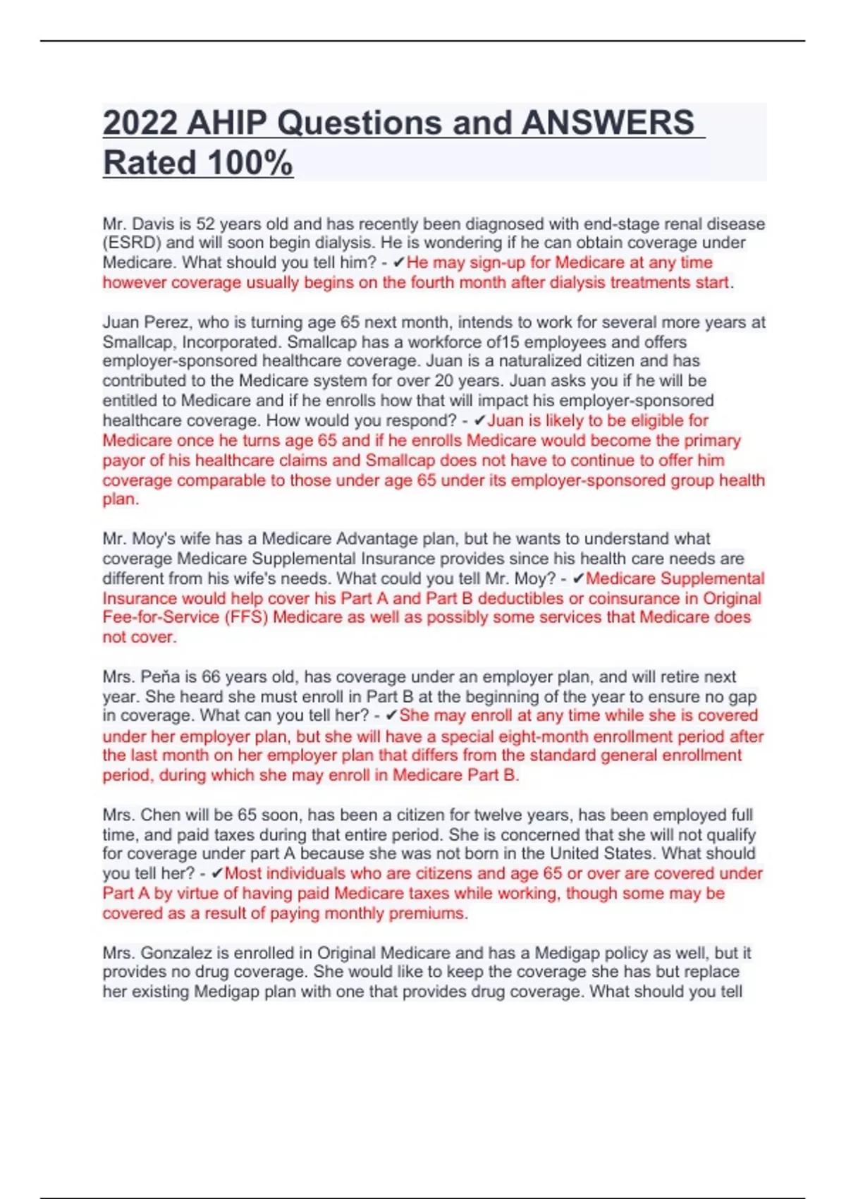 AHIP 2024 Final Exam Test Updated Questions and Answers (Verified Answers)