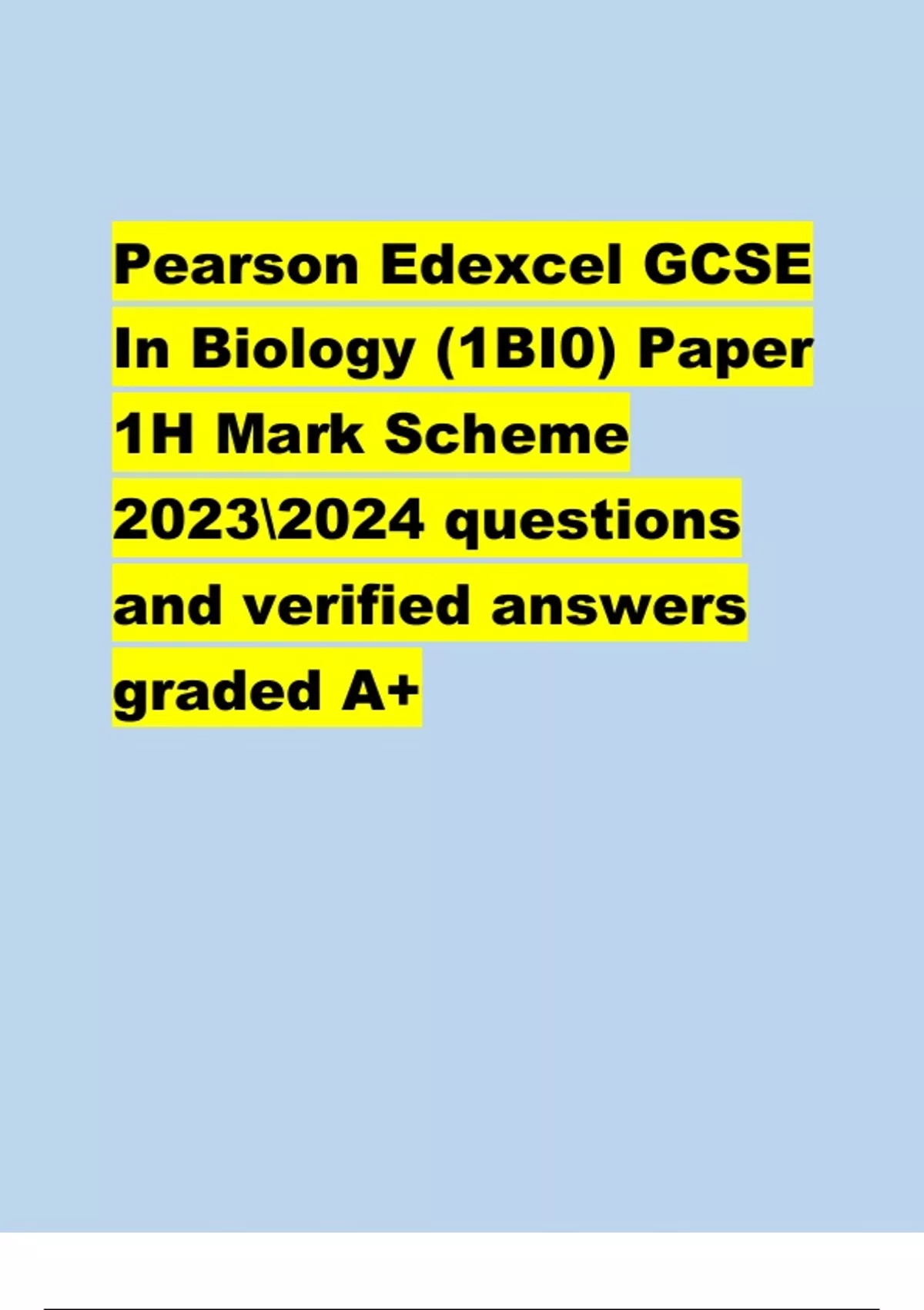 Pearson Edexcel GCSE In Biology (1BI0) Paper 1H Mark Scheme questions and verified answers graded A+