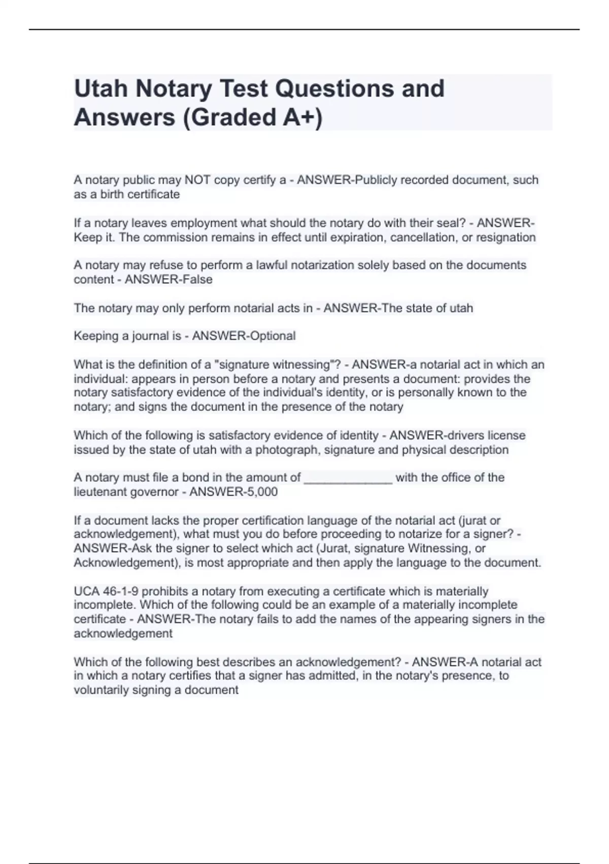 - utah notary test stuvia