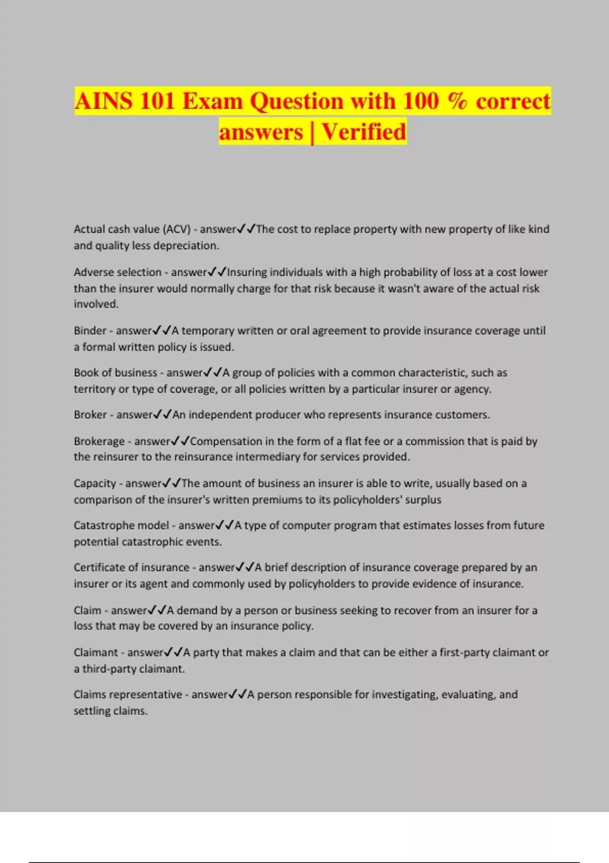 AINS 101 Exam Question with 100 % correct answers | Verified