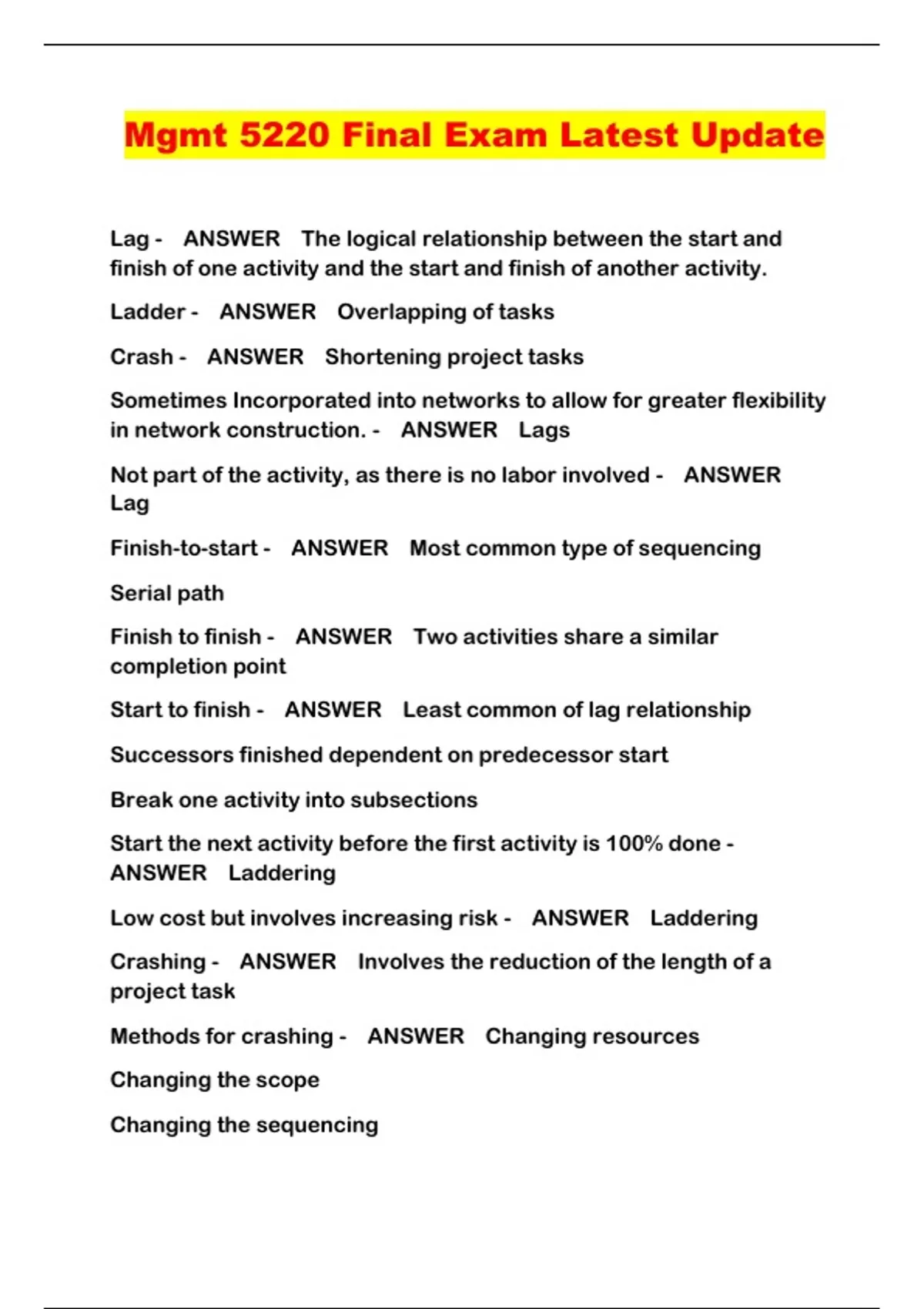Mgmt 5220 Final Exam Latest Update