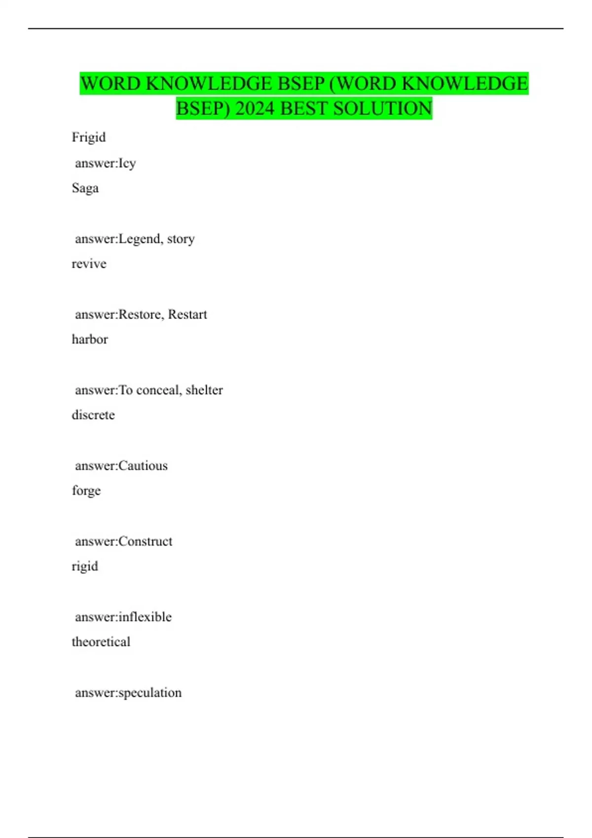 WORD KNOWLEDGE BSEP (WORD KNOWLEDGE BSEP) 2024 BEST SOLUTION