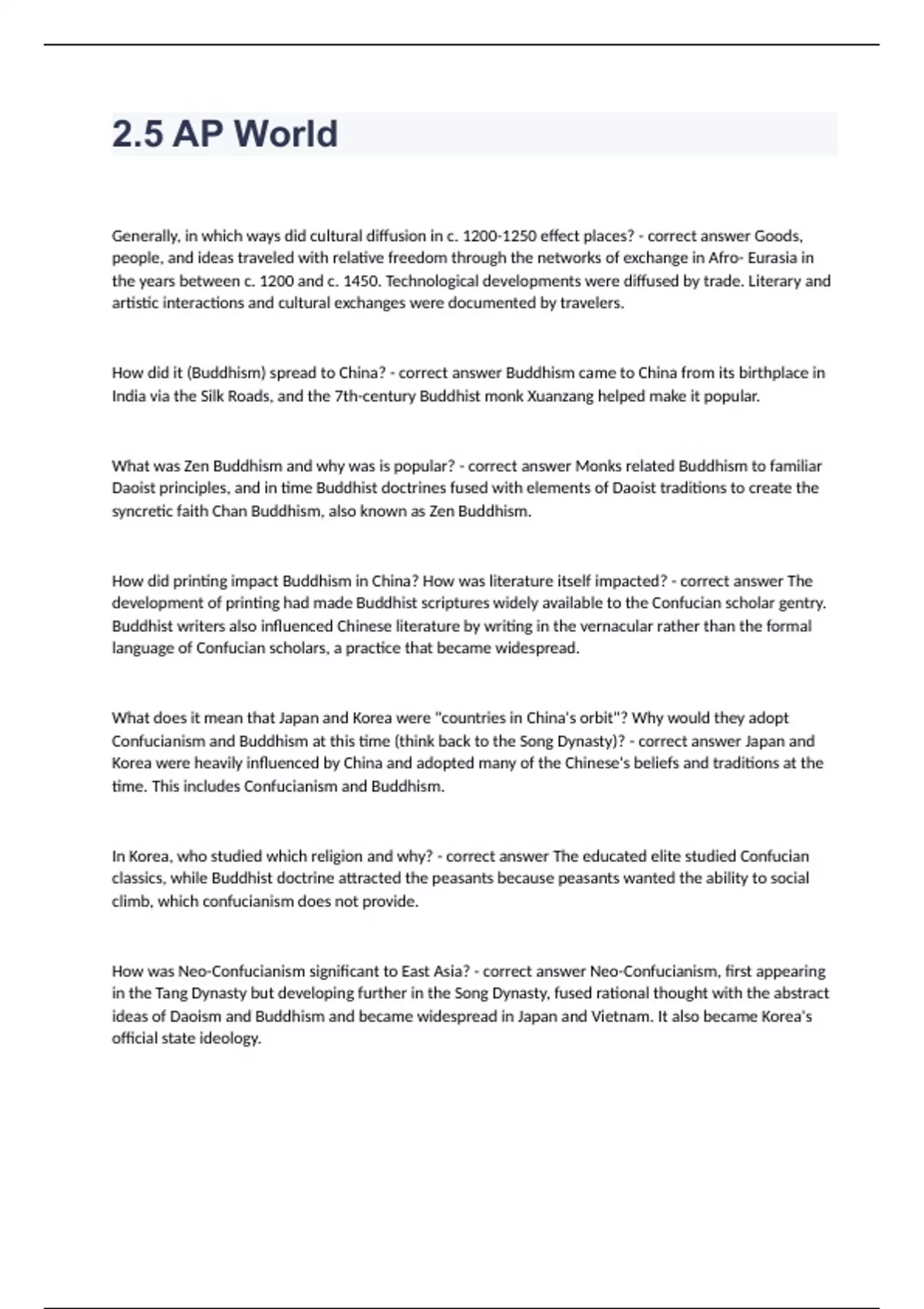 2.5 AP World questions and answers verified 2024