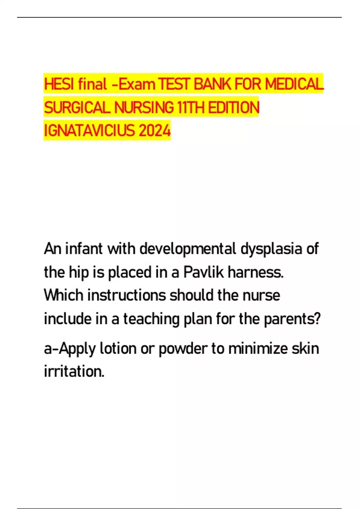 HESI final -Exam TEST BANK FOR MEDICAL SURGICAL NURSING 11TH EDITION IGNA
