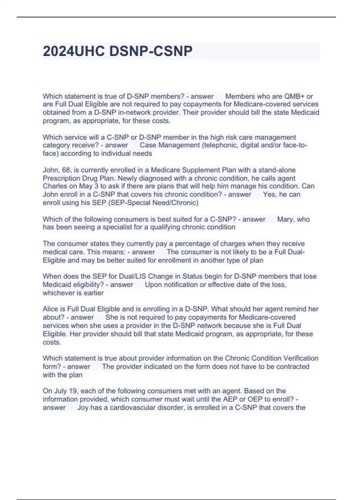 Exam of 3 pages for the course Uhc at Uhc (2024UHC DSNP-CSNP)