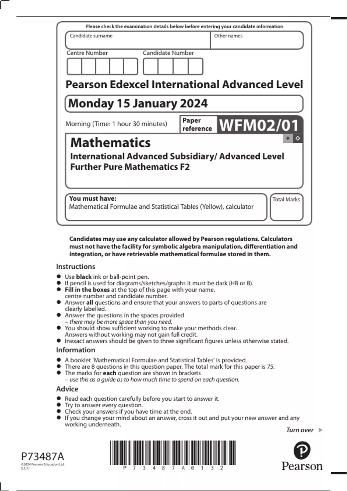 Candidates may use any calculator allowed by Pearson regulations. Calculators