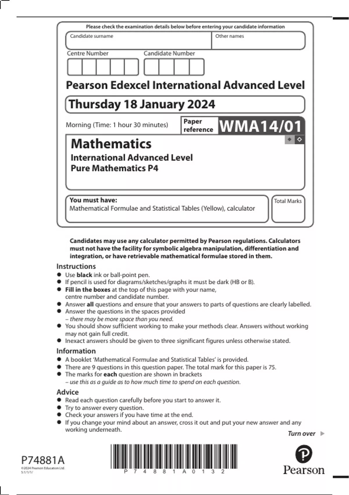 Candidates may use any calculator permitted by Pearson regulations. Calculators