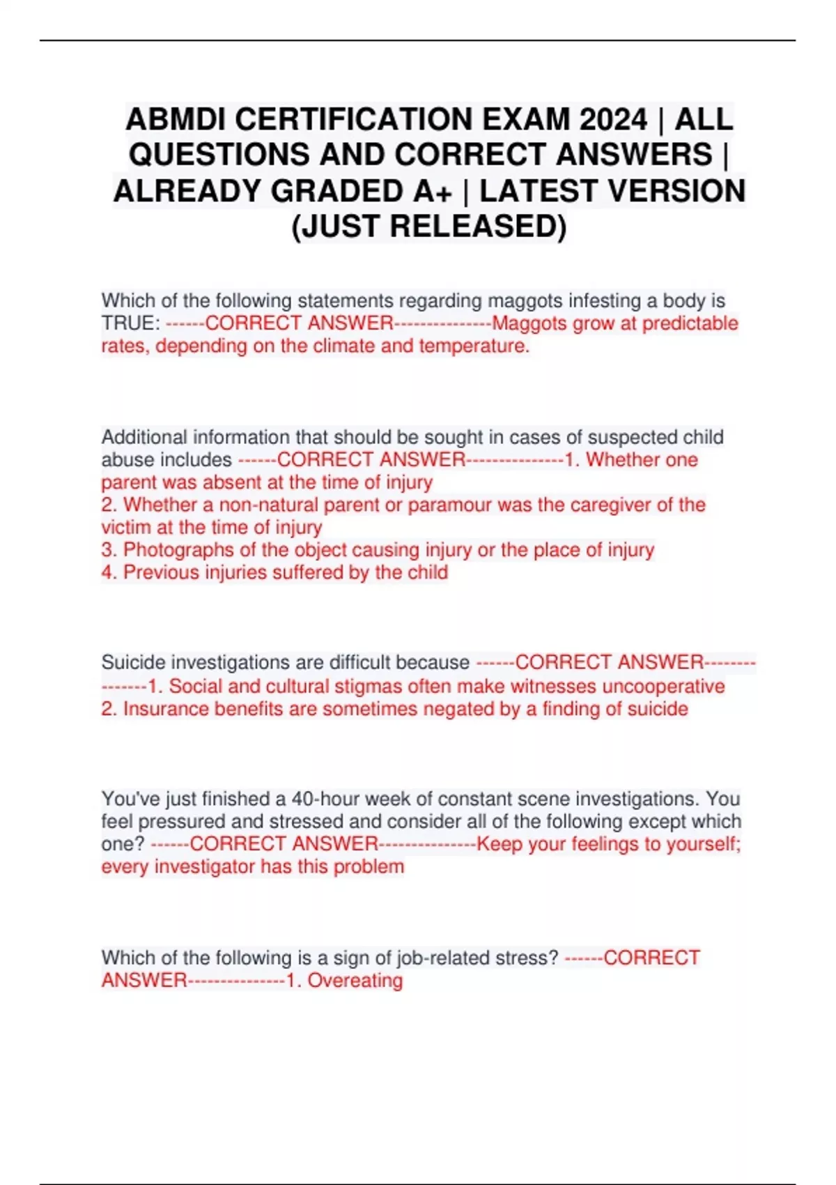 ABMDI CERTIFICATION EXAM 2024 | ALL QUESTIONS AND CORRECT ANSWERS | ALREADY GRADED A+ | LATEST VERSION (JUST RELEASED)ABMDI CERTIFICATION EXAM 2024 | ALL QUESTIONS AND CORRECT ANSWERS | ALREADY GRADED A+ | LATEST VERSION (JUST RELEASED)