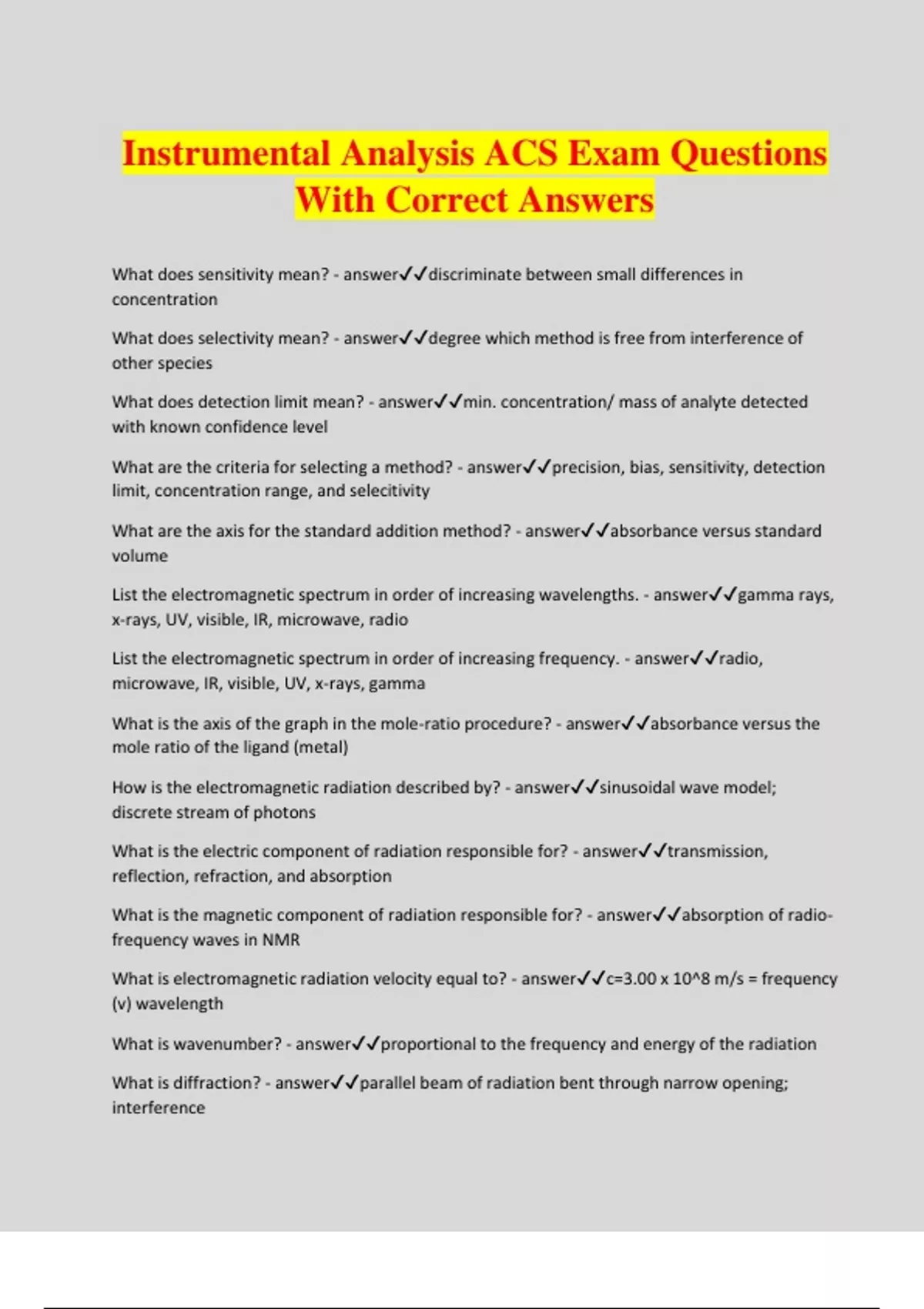 Instrumental Analysis ACS Exam Questions With Correct Answers