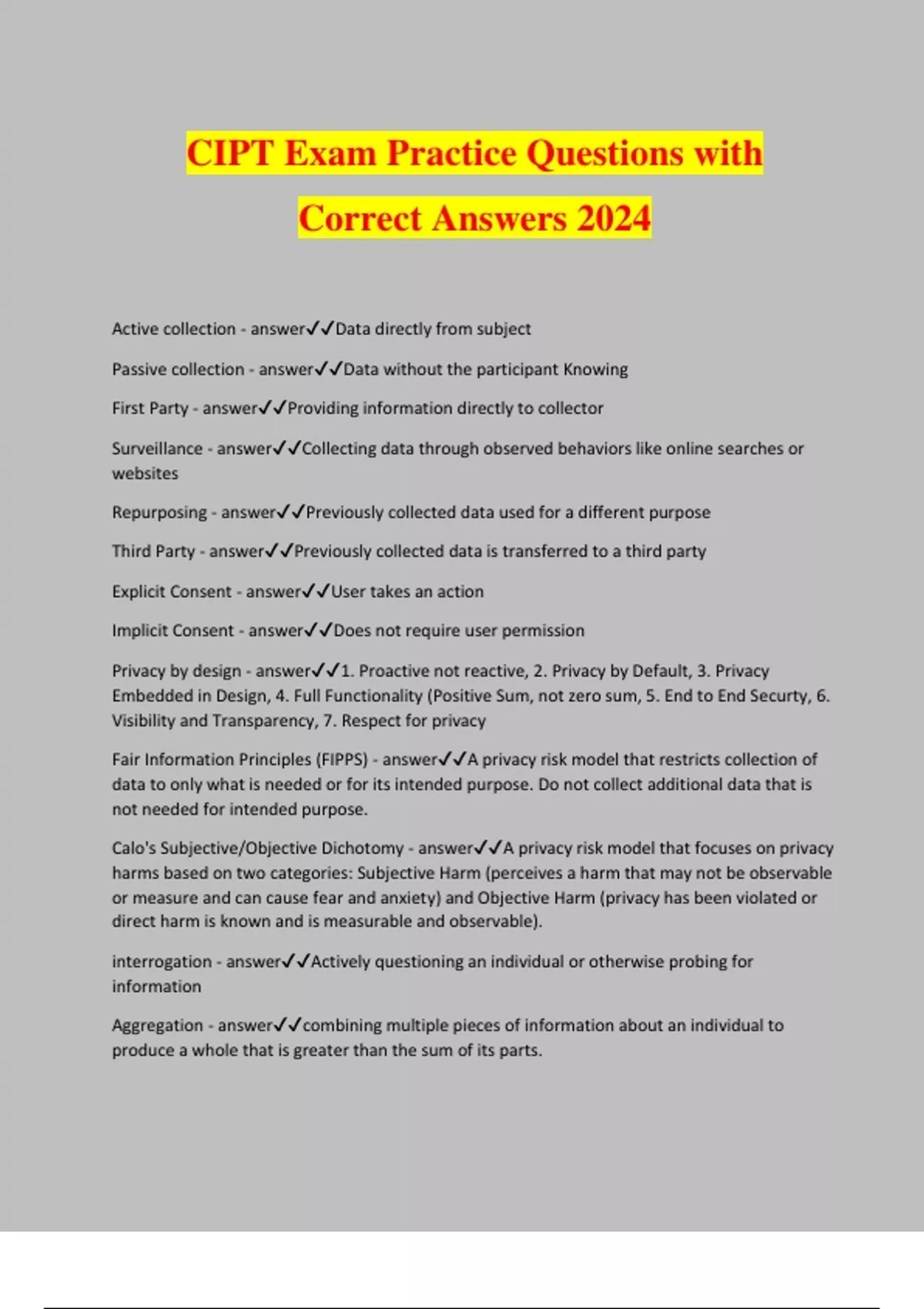 CIPT Exam Practice Questions with Correct Answers 2024