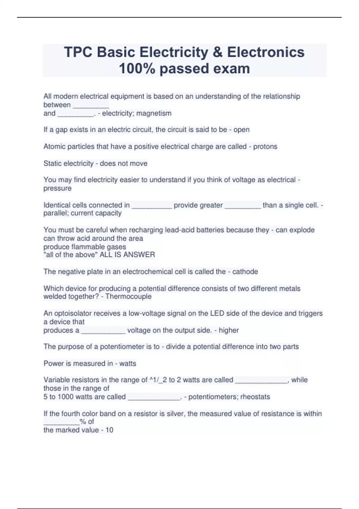 TPC Basic Electricity & Electronics 100% passed exam.