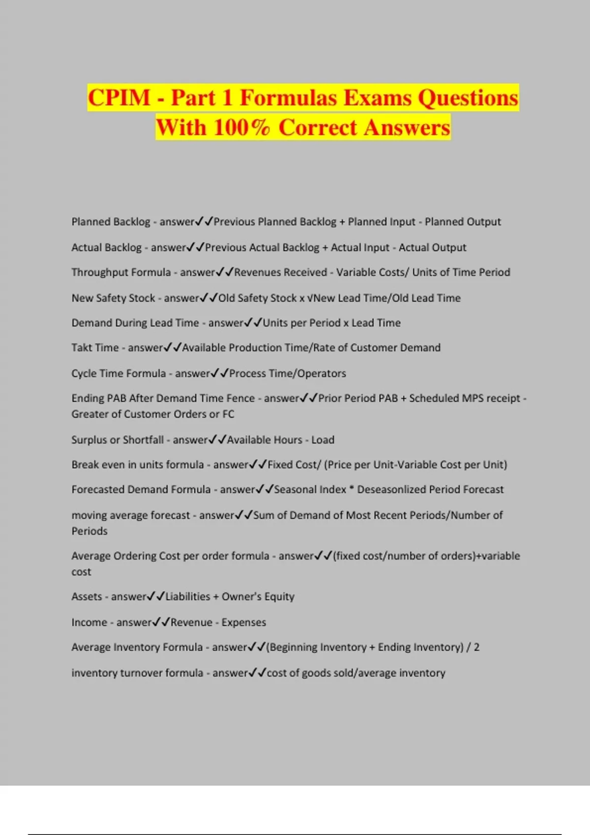 CPIM - Part 1 Formulas Exams Questions With 100% Correct Answers