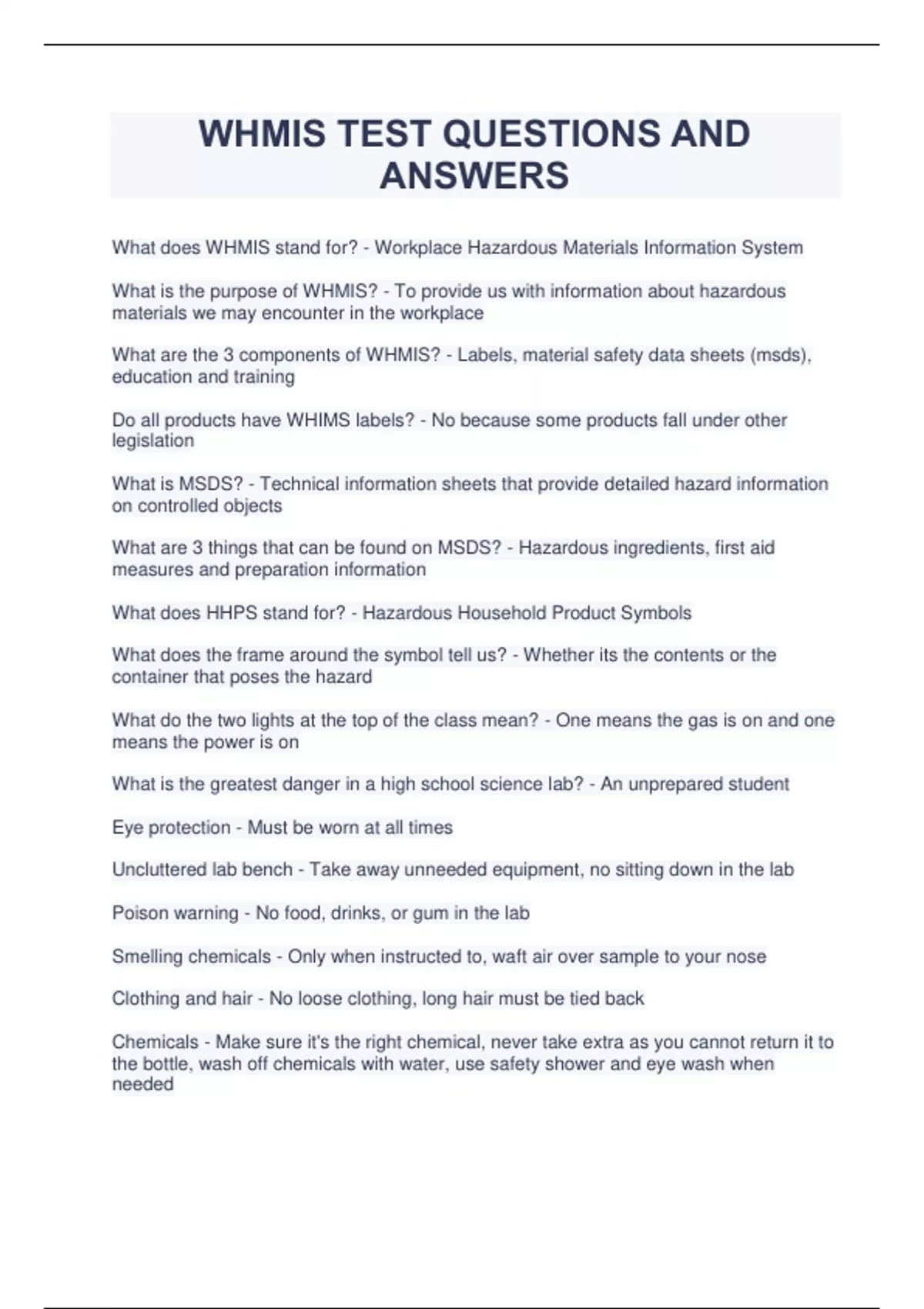WHMIS TEST QUESTIONS AND ANSWERS.