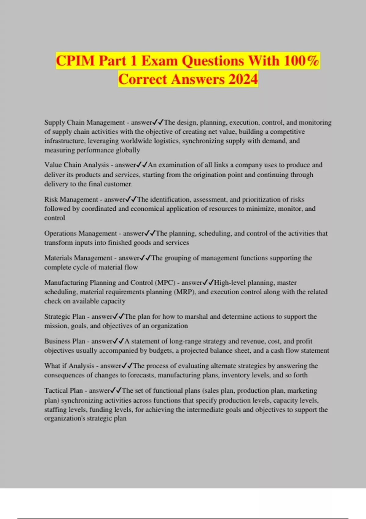CPIM Part 1 Exam Questions With 100% Correct Answers 2024