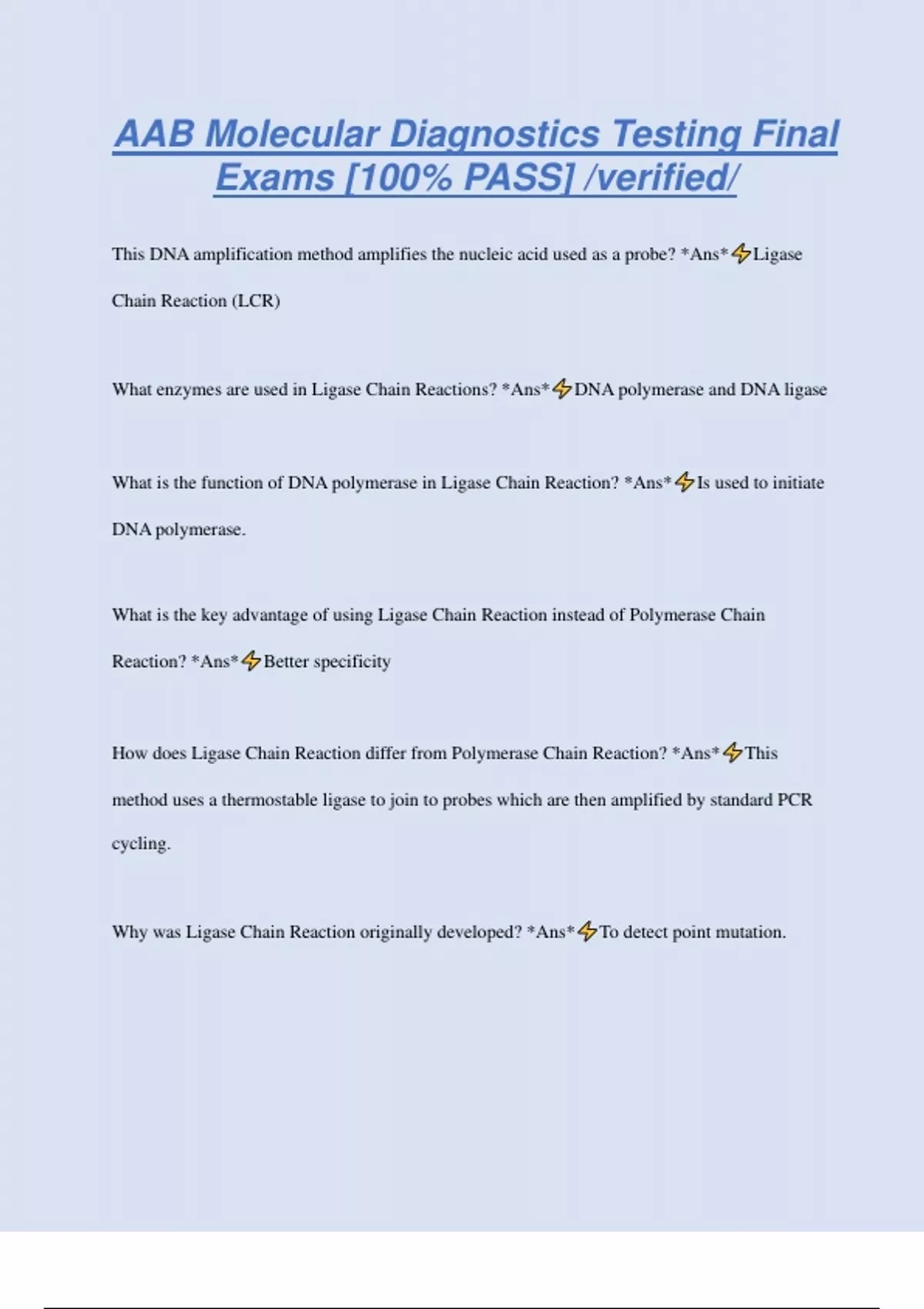 AAB Molecular Diagnostics Testing Final Exams [100% PASS] /verified/