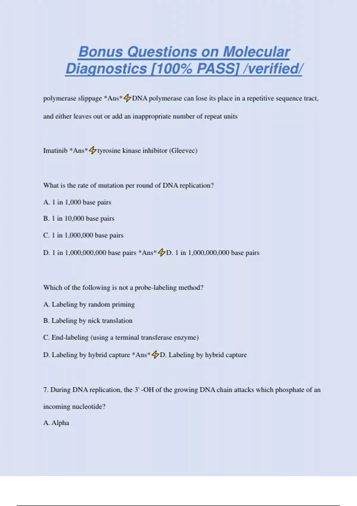 Bonus Questions on Molecular Diagnostics [100% PASS] /verified/