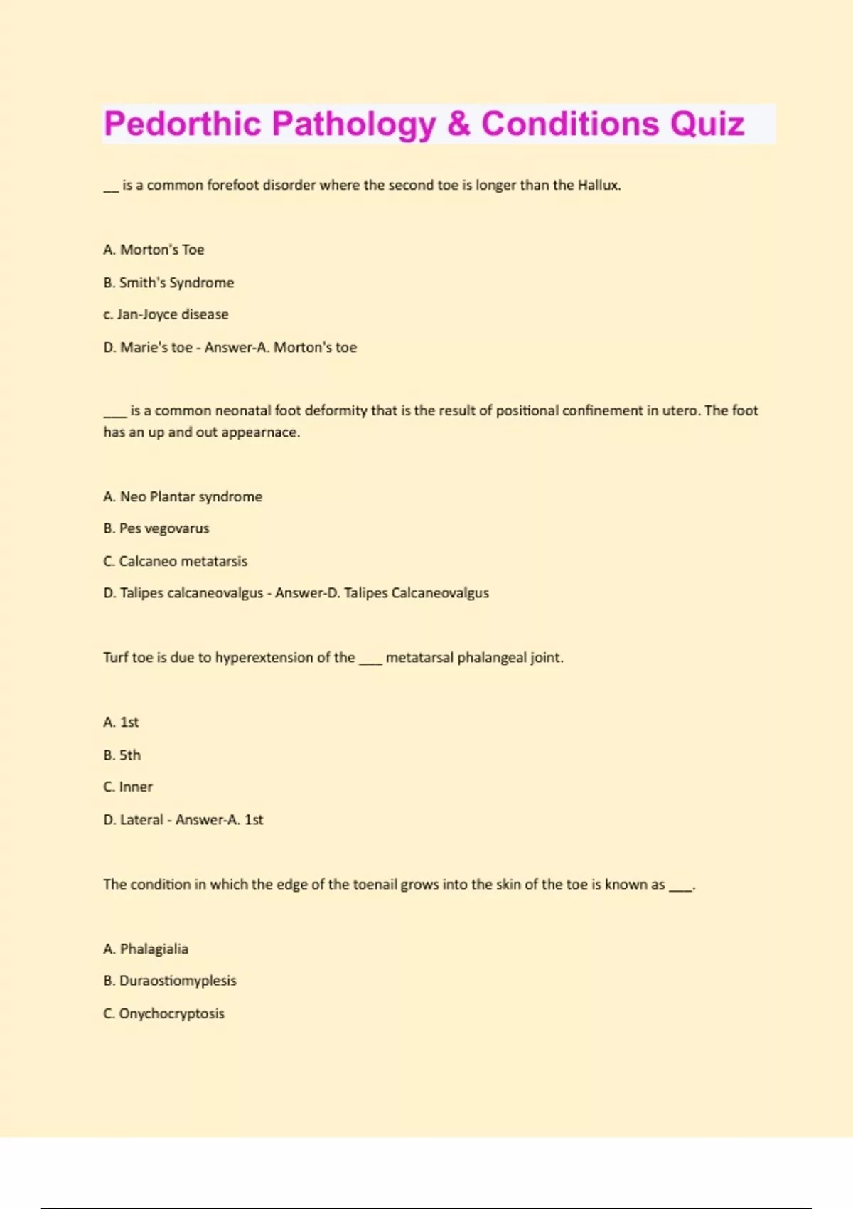 Pedorthic Pathology & Conditions Questions With All Correct Answers.