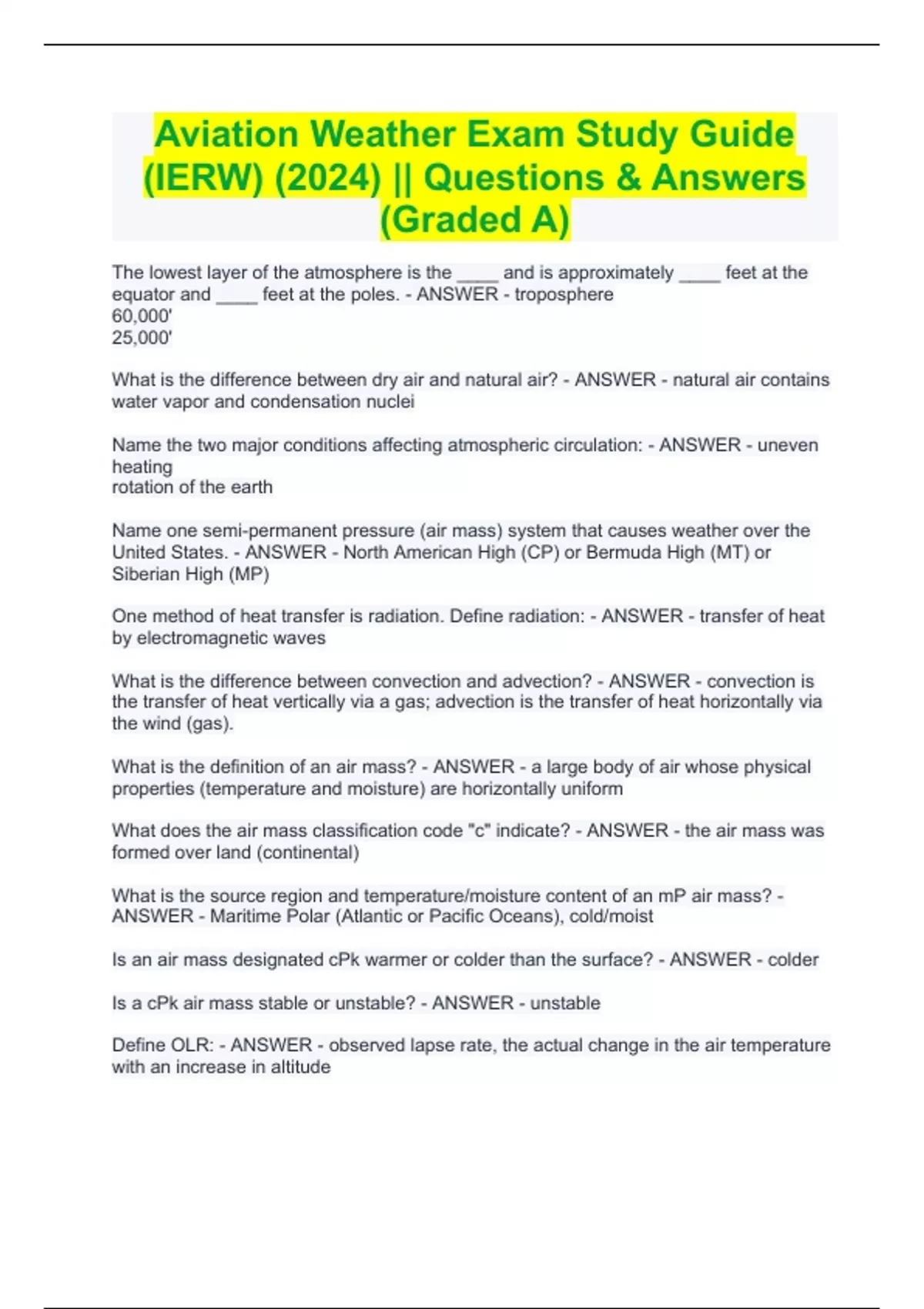 The lowest layer of the atmosphere is the ____ and is approximately ____ feet at the equator and ____ feet at the poles. - ANSWER - troposphere