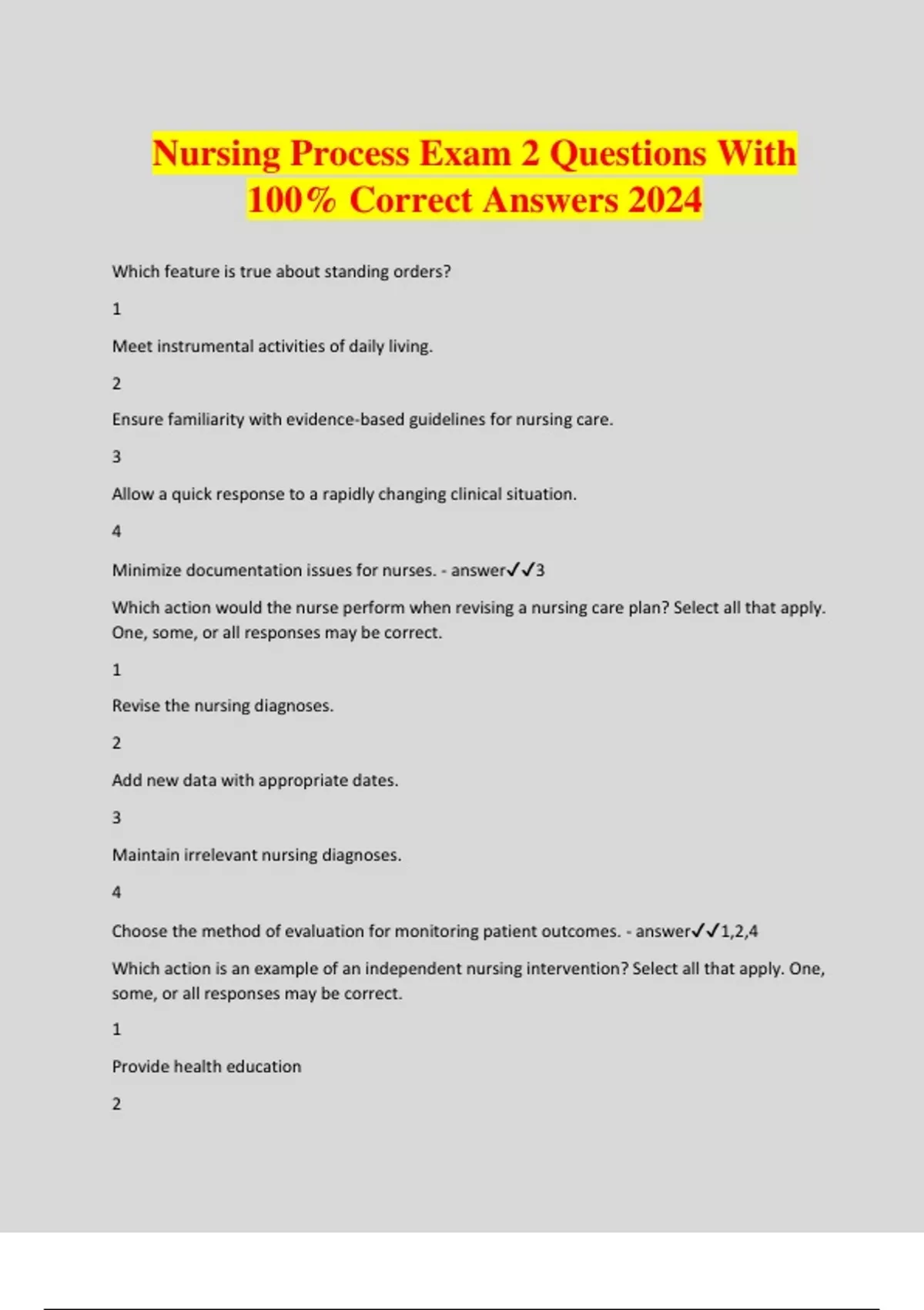 Nursing Process Exam 2 Questions With 100% Correct Answers 2024