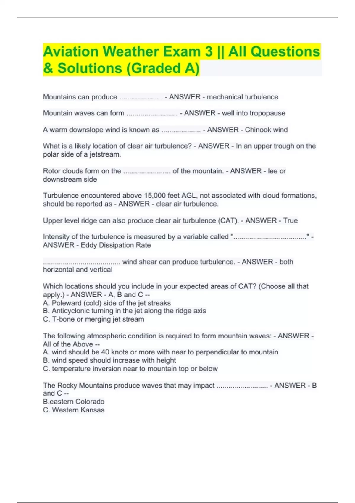 Aviation Weather Exam 3 || All Questions & Solutions (Graded A)Aviation Weather Exam 3 || All Questions & Solutions (Graded A)Aviation Weather Exam 3 || All Questions & Solutions (Graded A)Aviation Weather Exam 3 || All Questions & Solutions (Graded A)