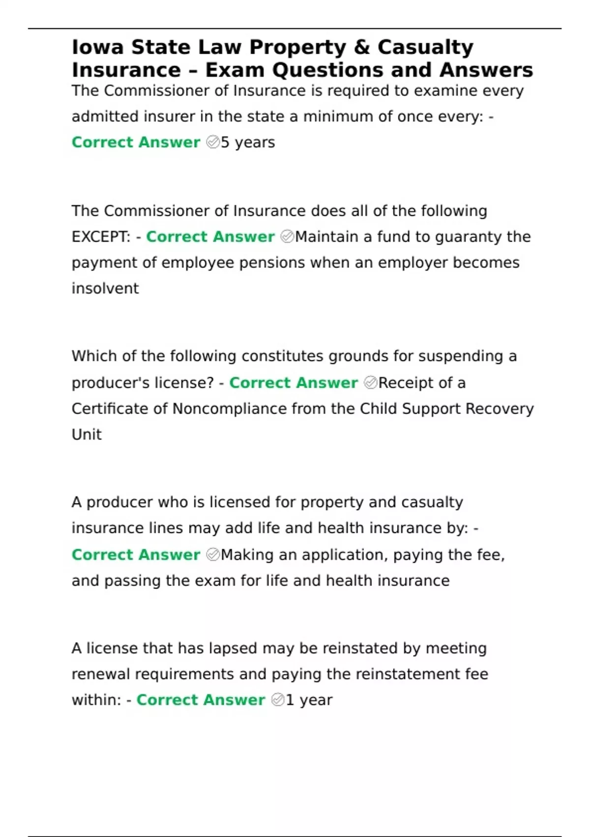 Iowa State Law Property & Casualty Insurance – Exam Questions and Answers