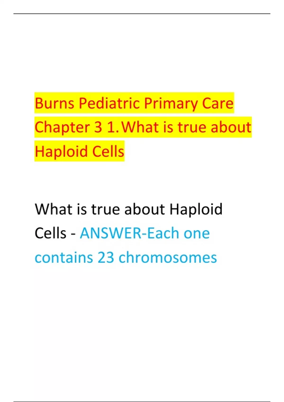 Burns Pediatric Primary Care Chapter 3 1.What is true about Haploid Cells