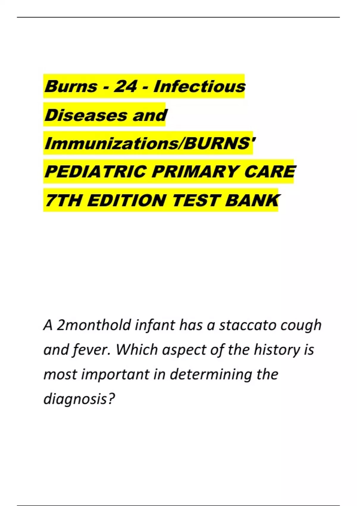 Burns - 24 - Infectious Diseases and Immunizations/BURNS' PEDIATRIC PRIMARY CARE 7TH EDITION TEST BANK