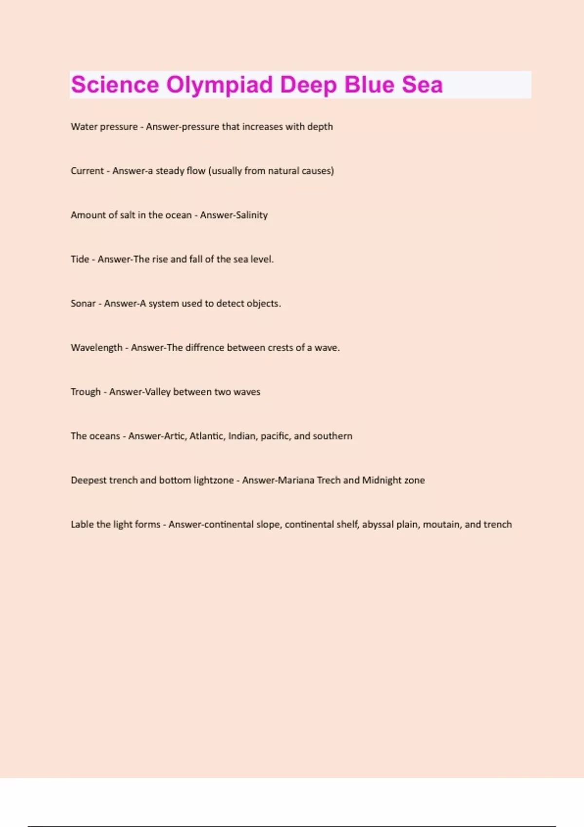 Science Olympiad Deep Blue Sea Questions With All Correct Answers.