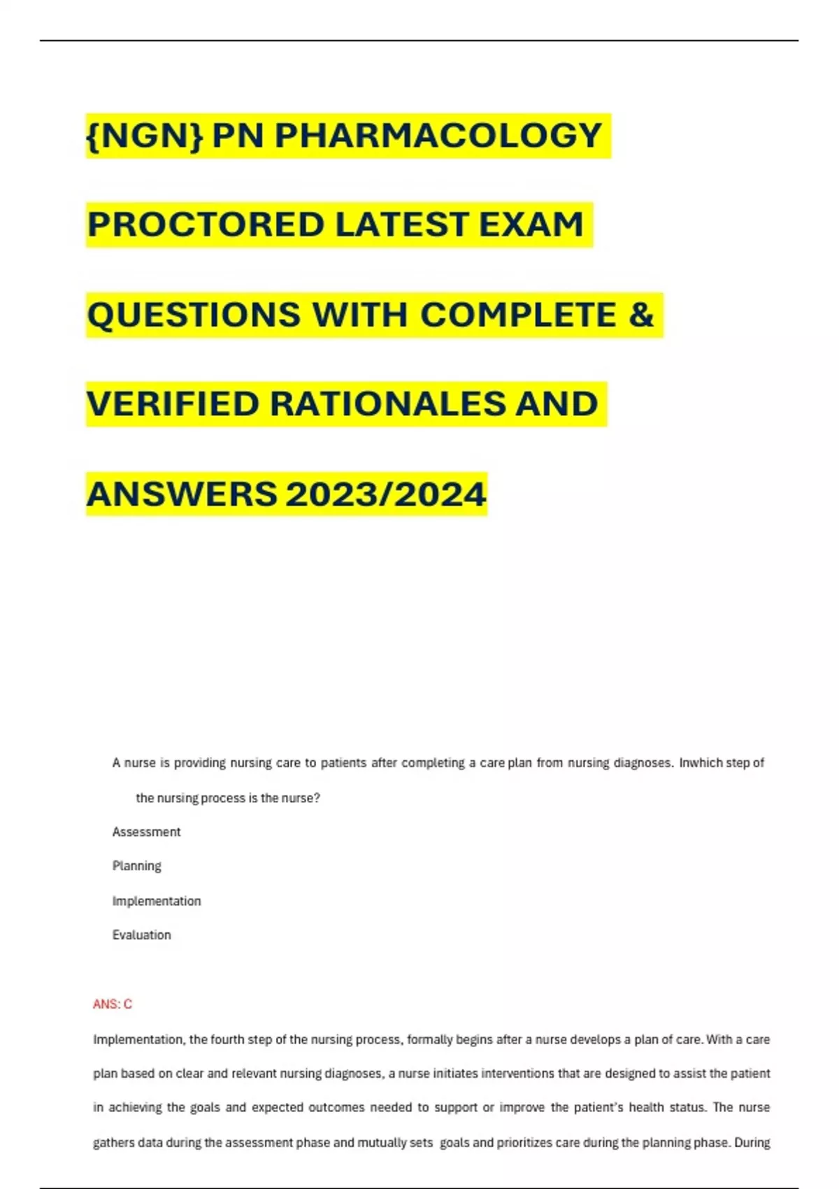 {NGN} PN PHARMACOLOGY PROCTORED LATEST EXAM