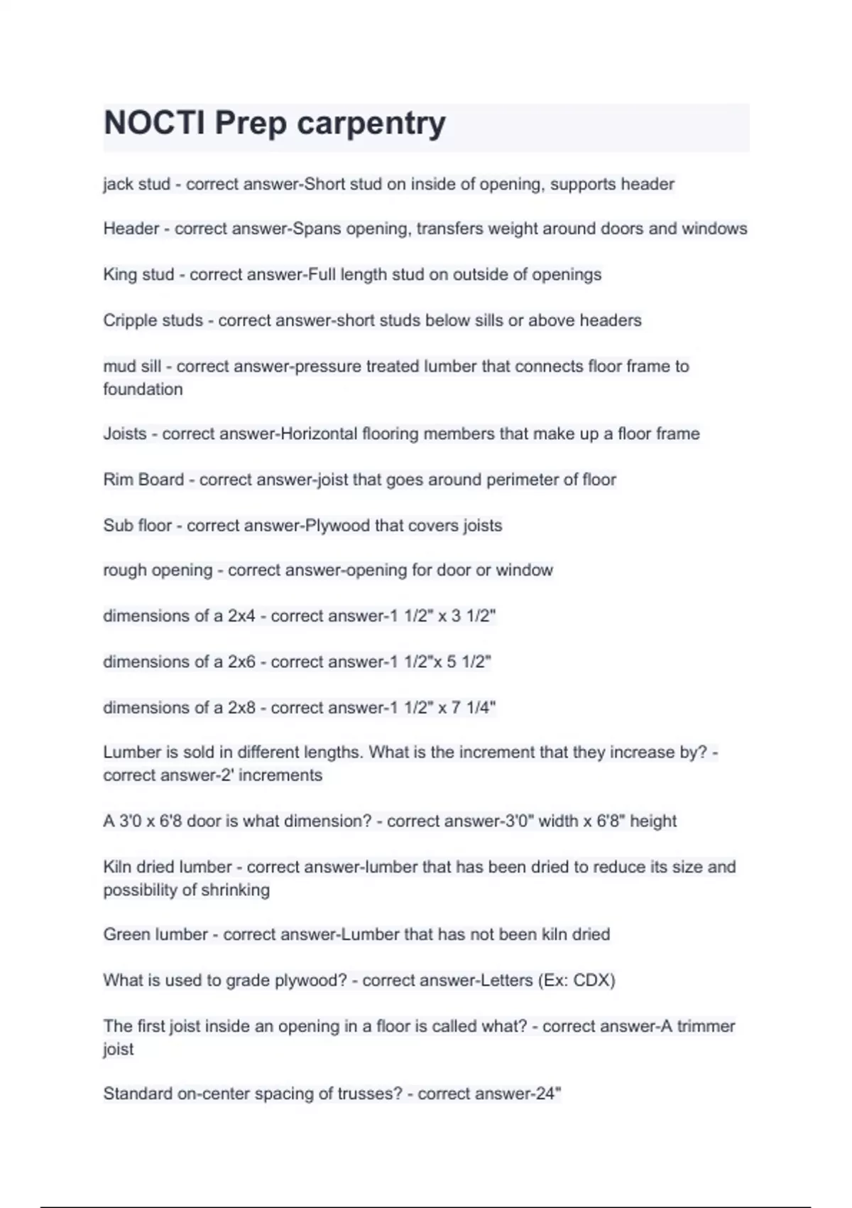 nocti prep carpentry questions answers
