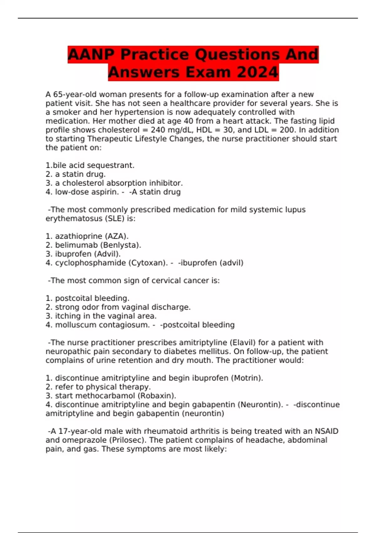 AANP Practice Questions And Answers Exam 2024