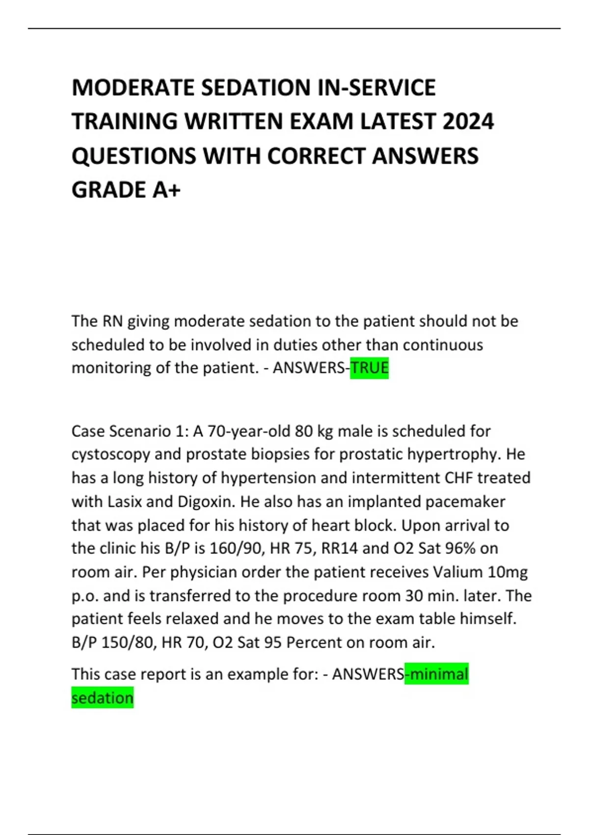 MODERATE SEDATION IN-SERVICE TRAINING WRITTEN EXAM LATEST 2024 QUESTIONS WITH CORRECT ANSWERS GRADE A+