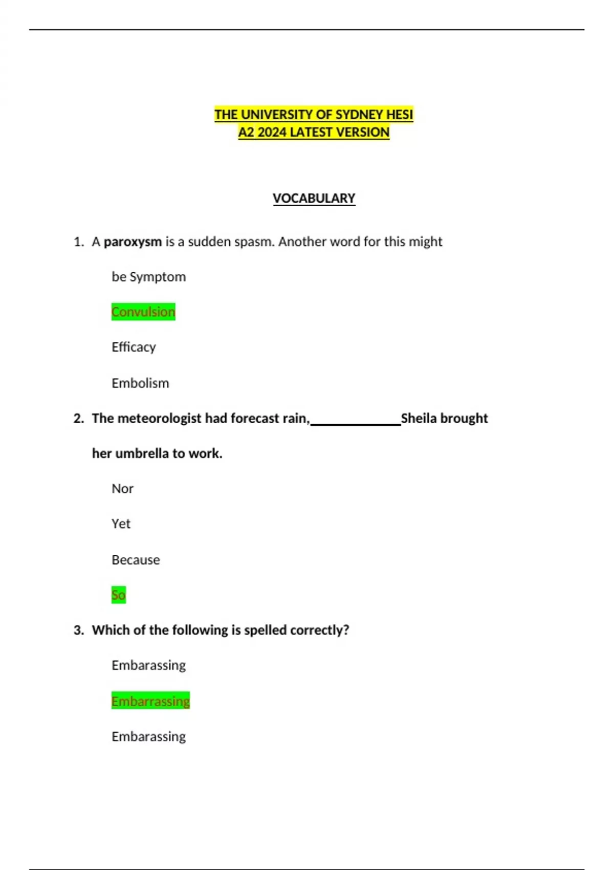 the university of sydney hesi a2 2024 latest vers